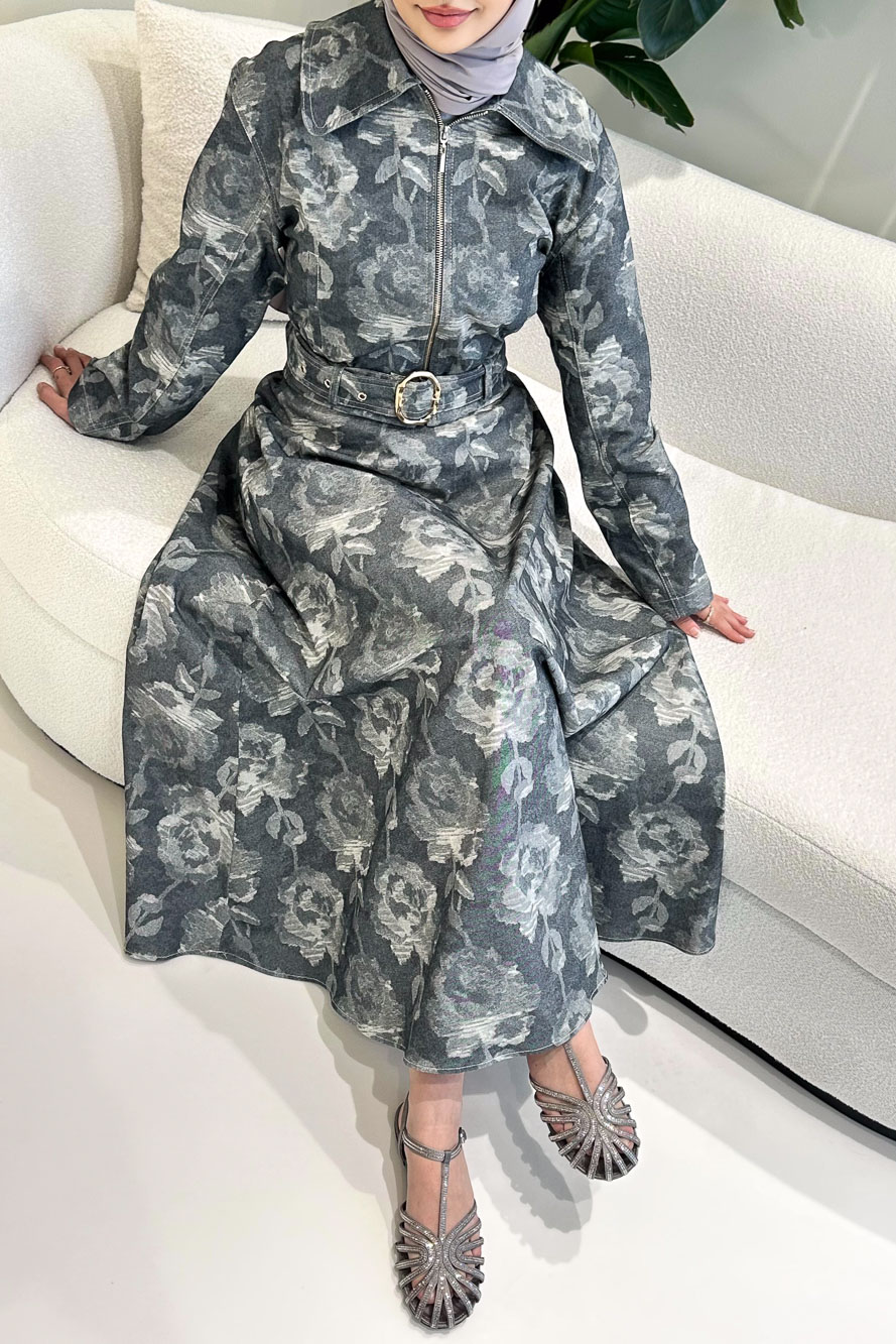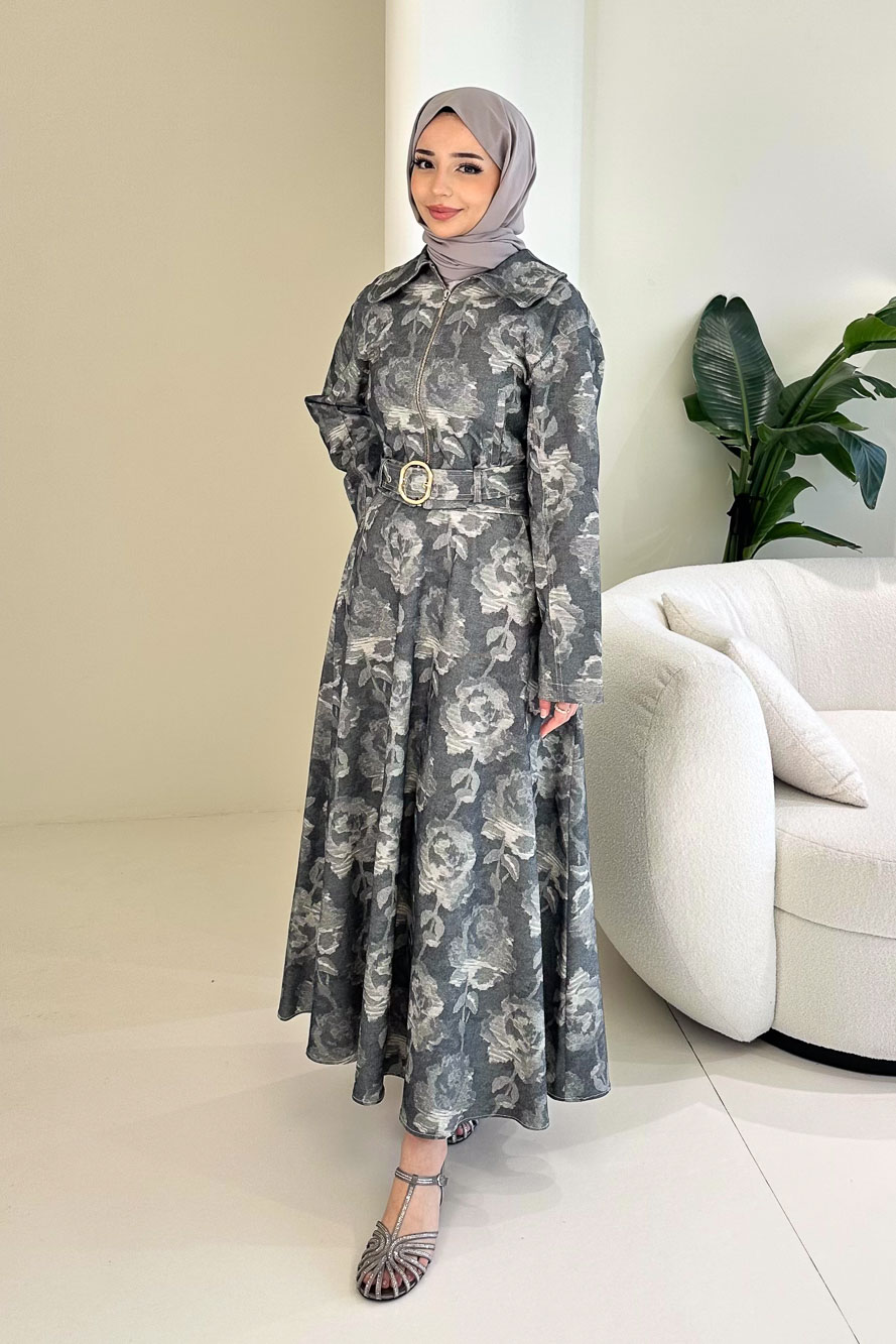 Üst kısmı fermuarlıdır ve yakalı tasarıma sahiptir. Dijital baskı detayı takıma modern bir görünüm kazandırır. Eteği beli lastikli ve fermuarlıdır. Cep ve kemer detayları sayesinde hem şık hem kullanışlı bir tasarım sunar. Manken üzerinde 1 bedendir.