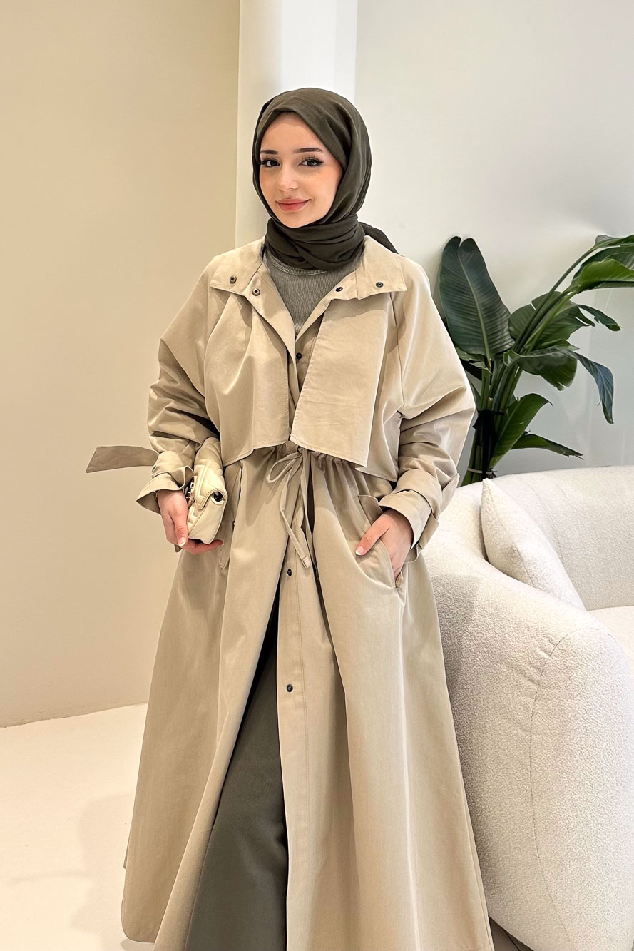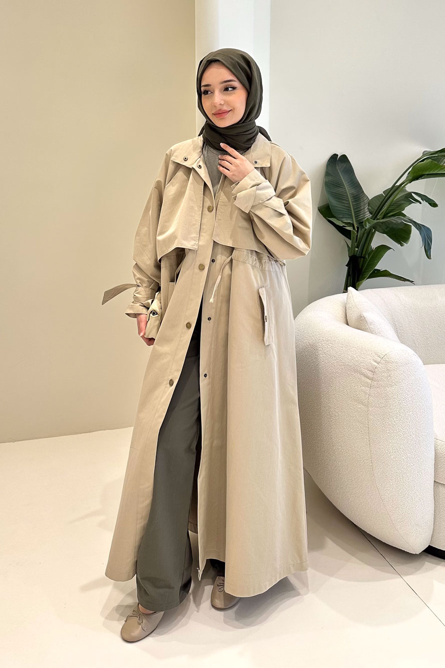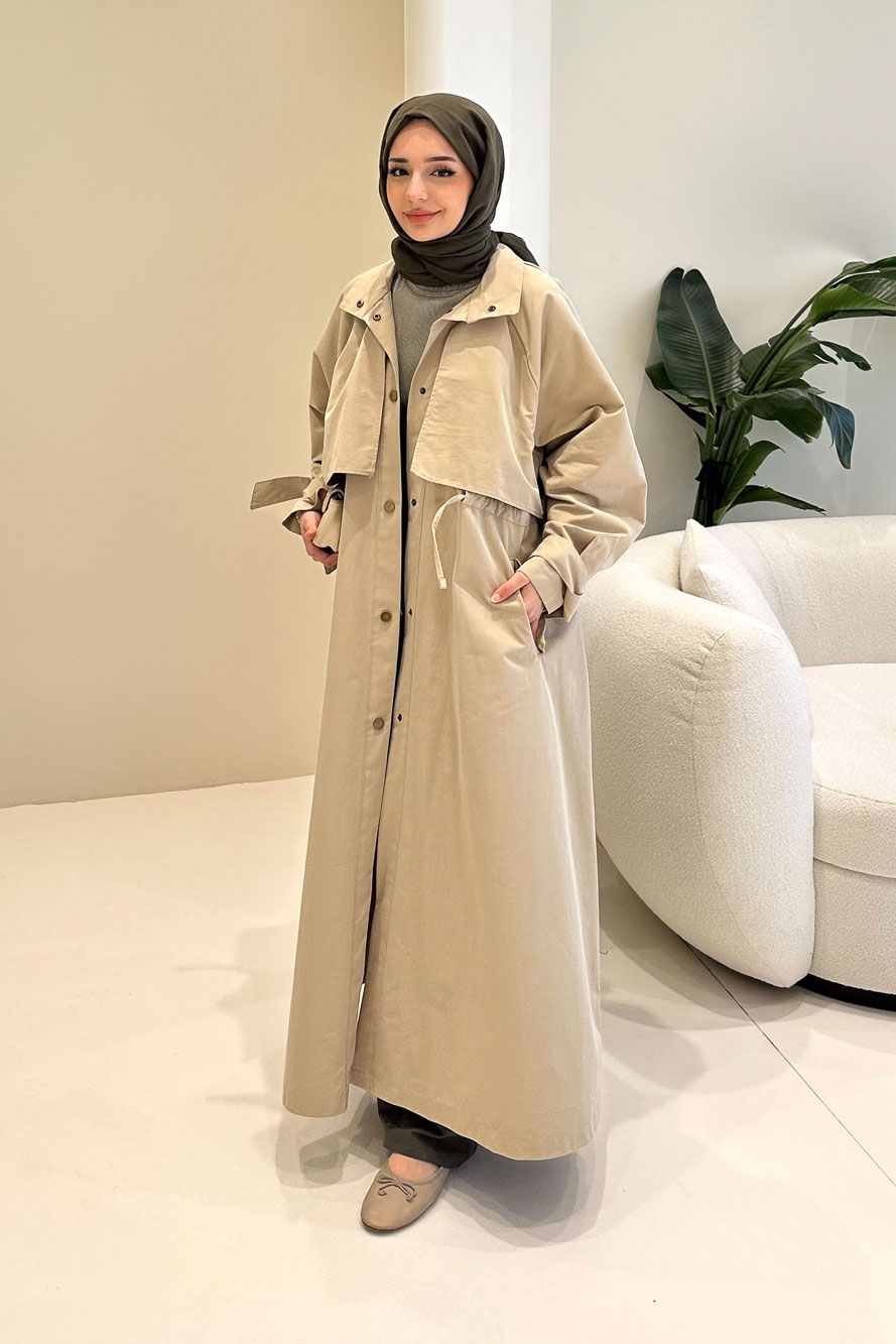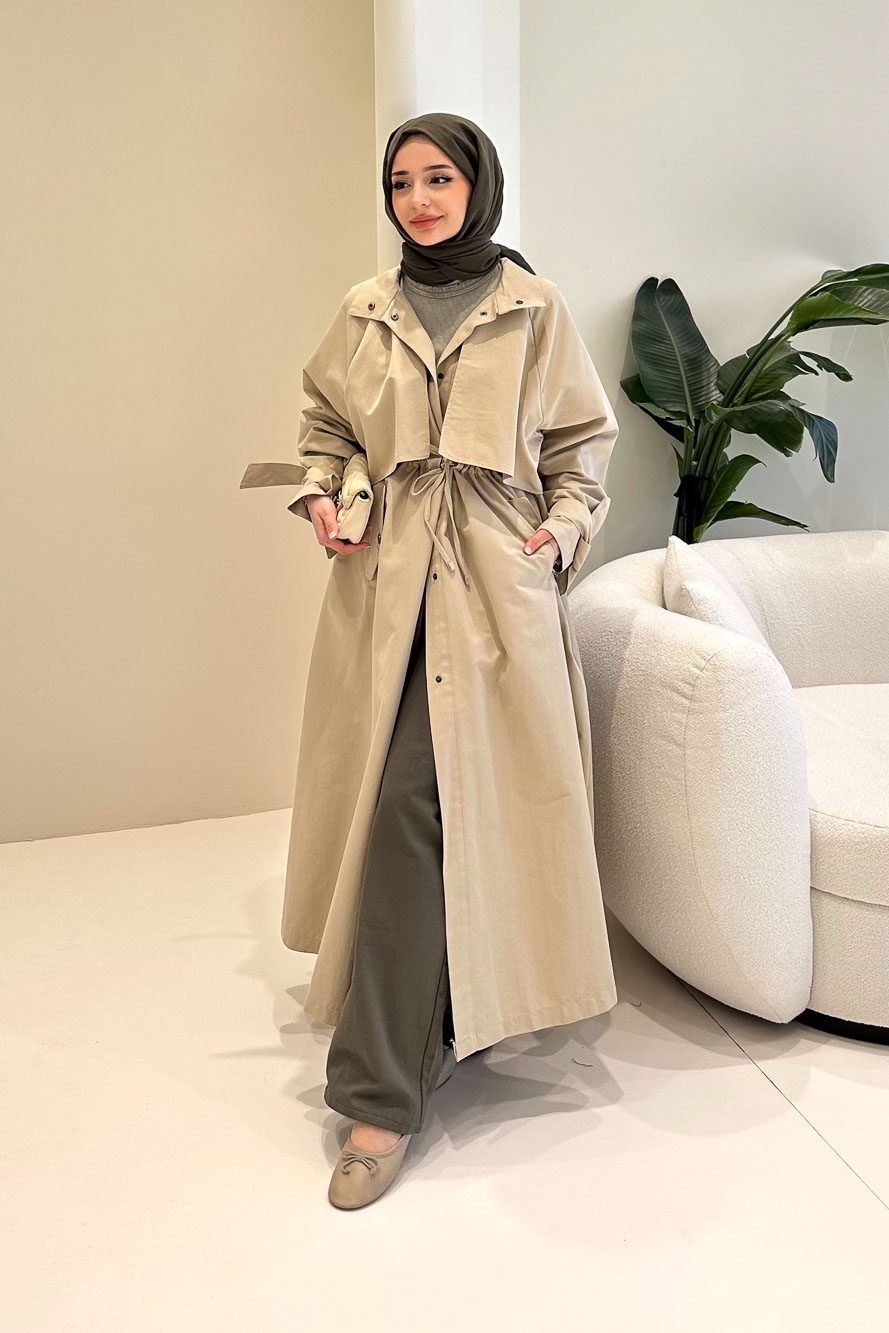 Rovella Beli Büzgülü Trençkot
