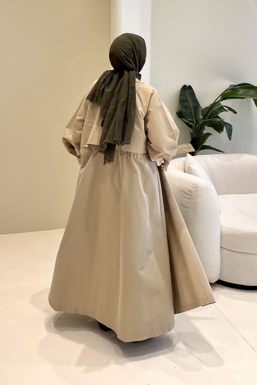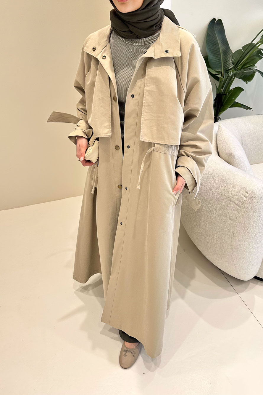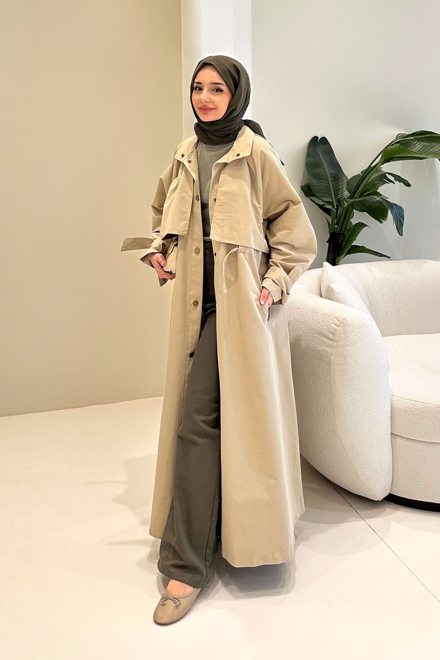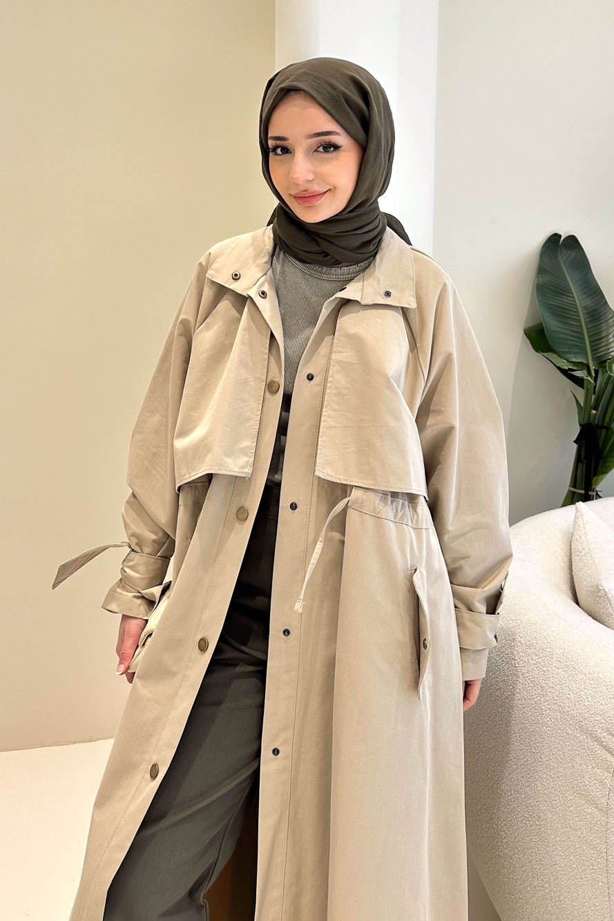 Rovella Beli Büzgülü Trençkot