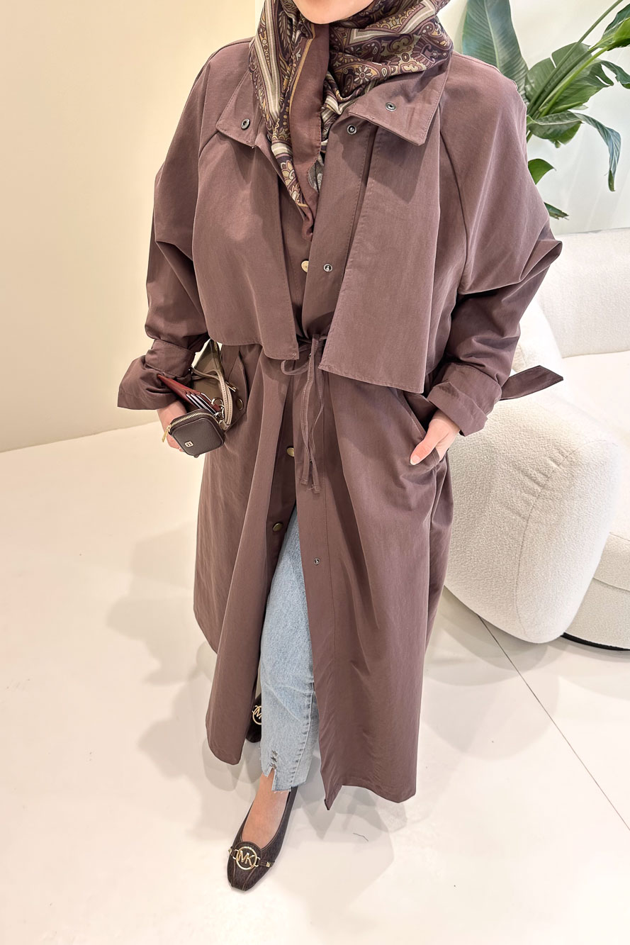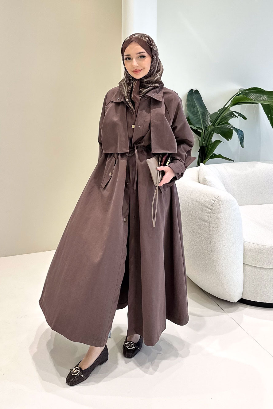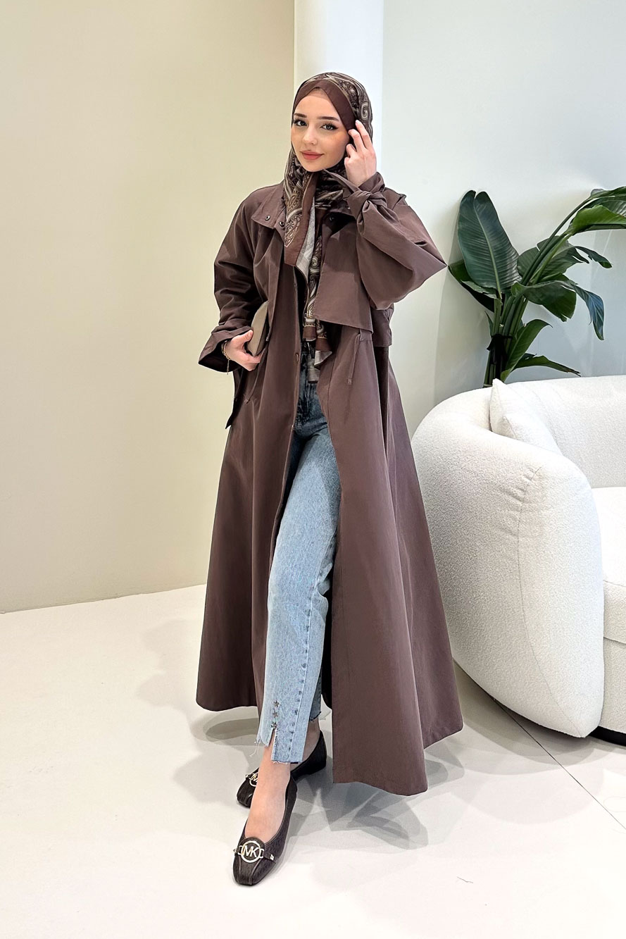 Lyon Beli Büzgülü Trençkot - Kahverengi