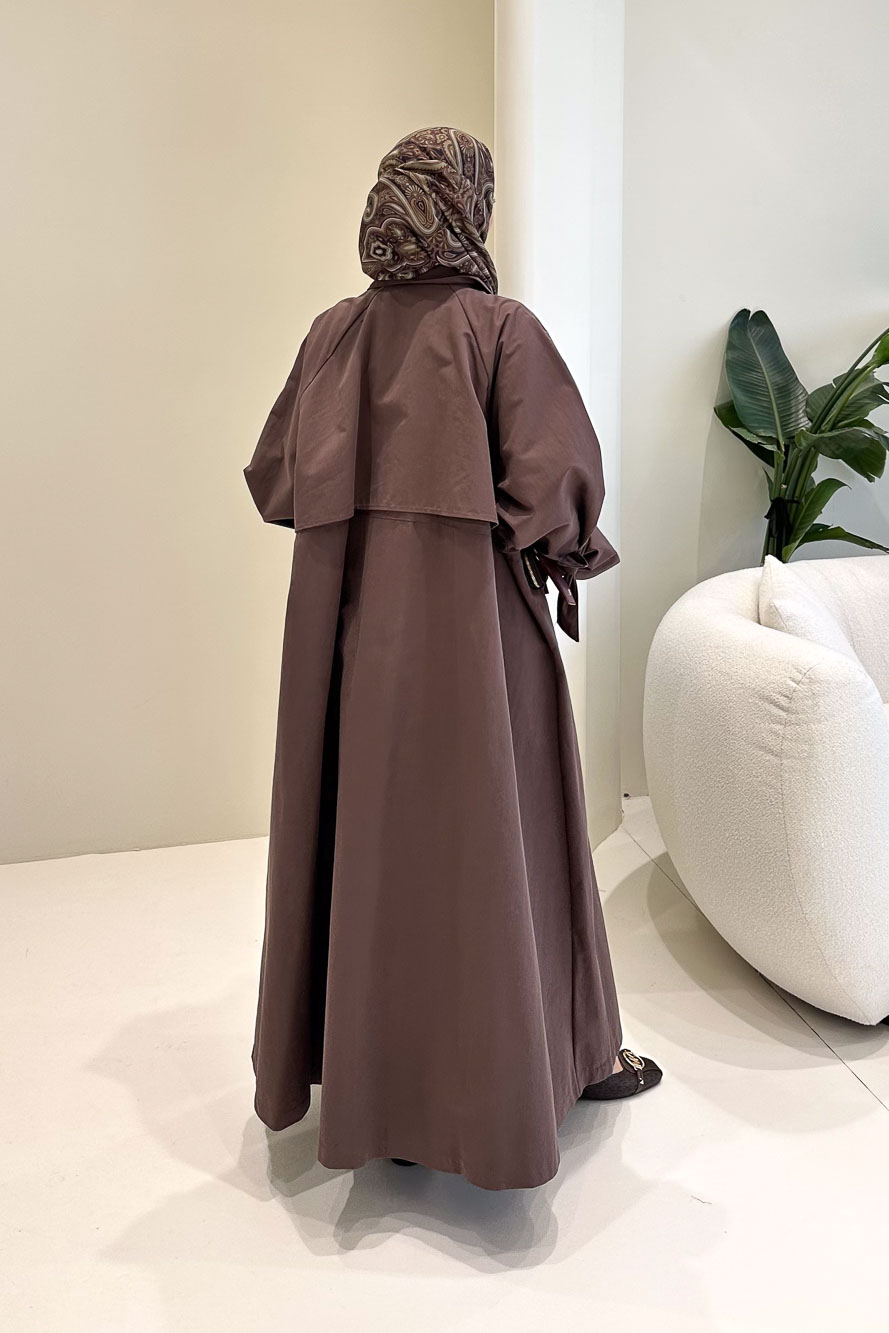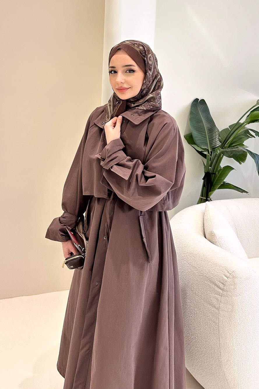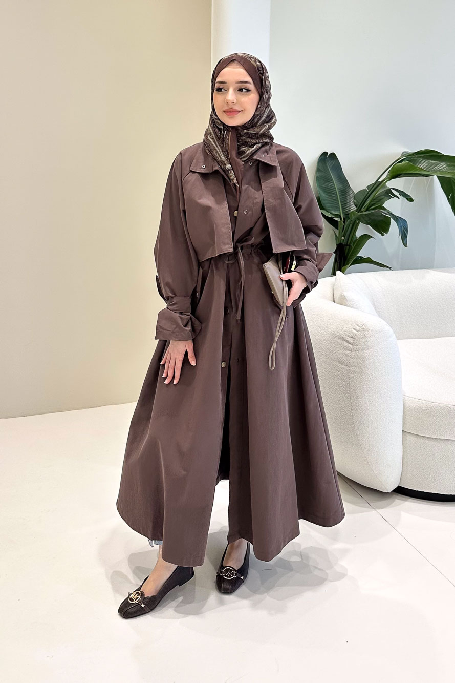 Lyon Beli Büzgülü Trençkot - Kahverengi