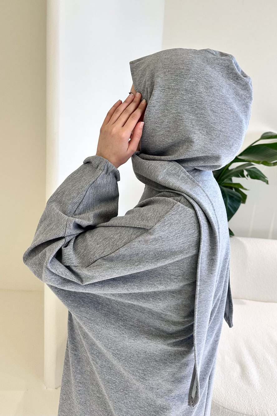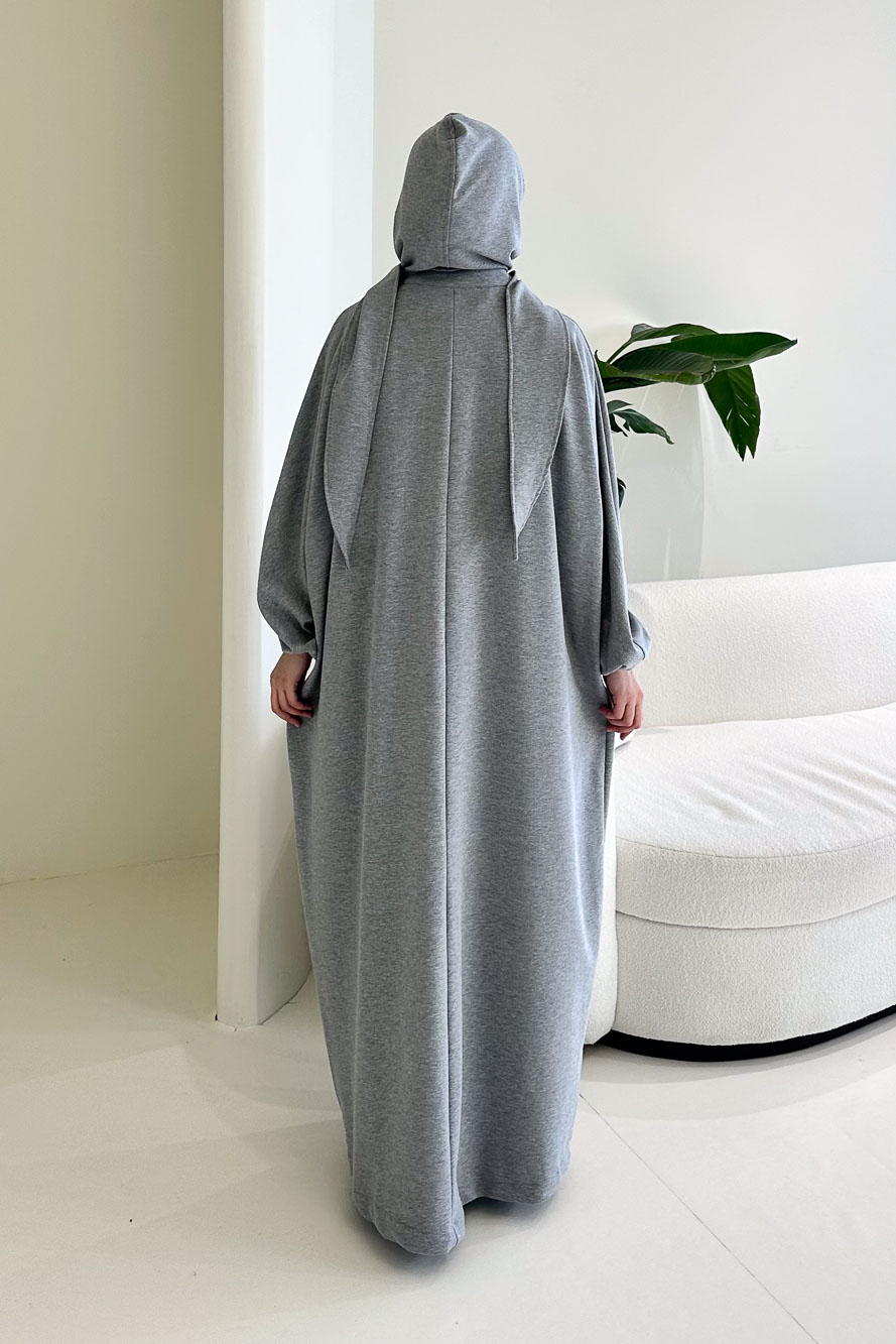 Seyyar kapşon detayı sayesinde isteğe göre kullanılabilir. Kolları stoperli, arkası yarım fermuarlıdır. Manken üzerinde 1 bedendir.