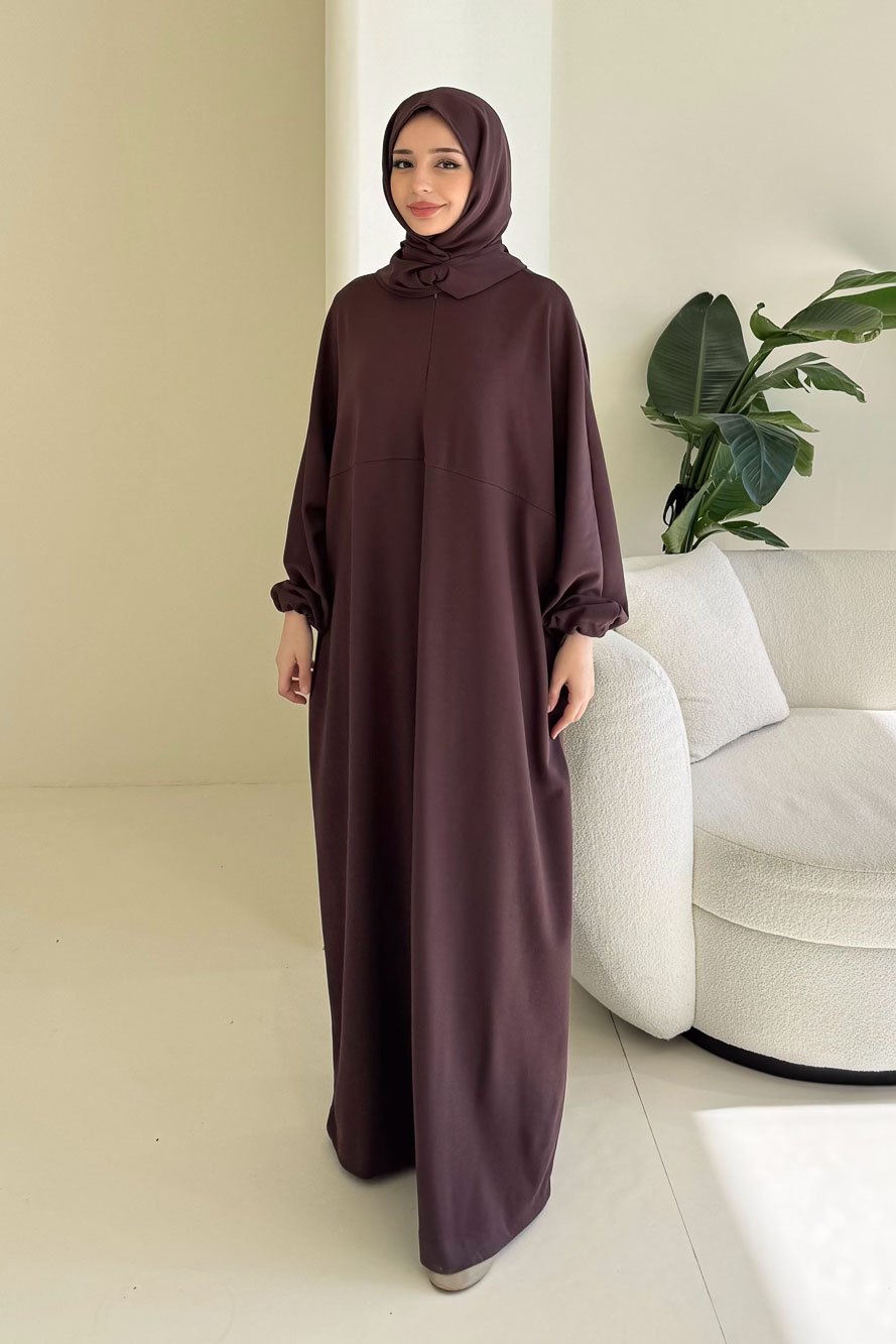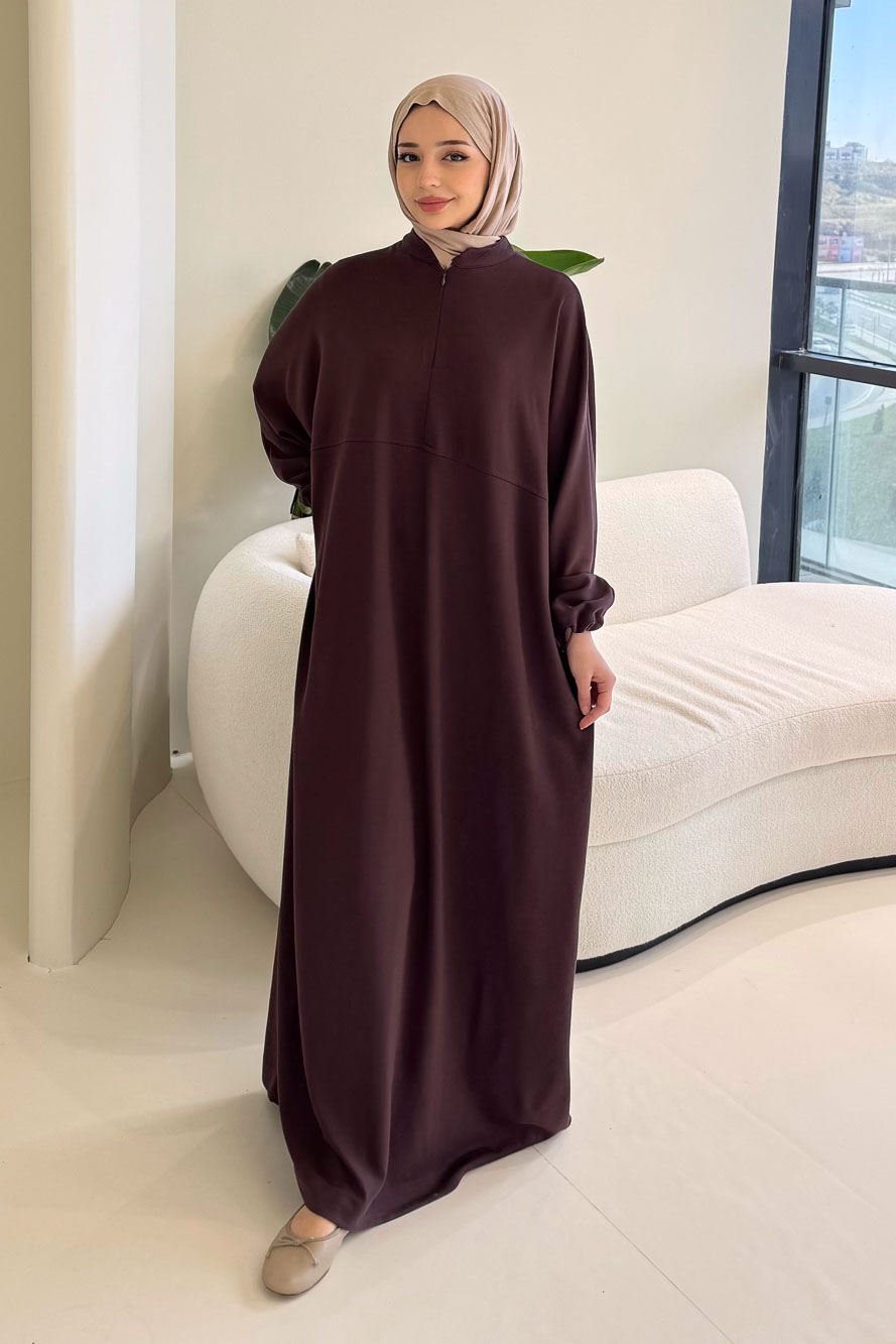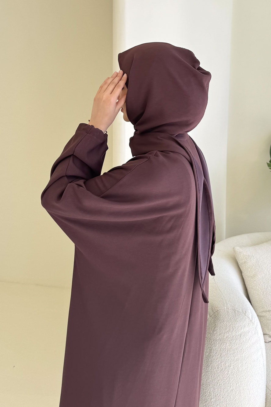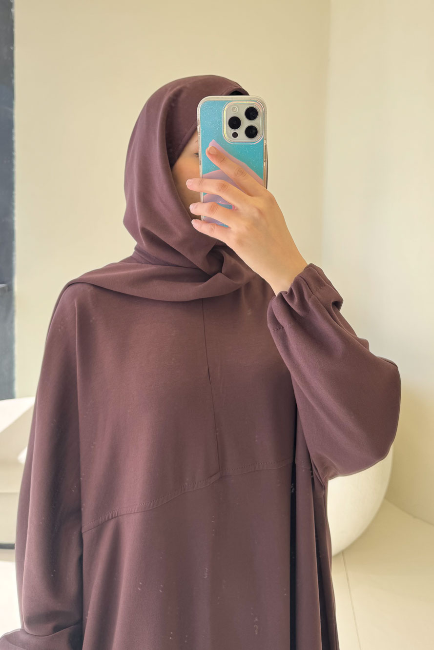 Mahya Seyyar Başörtülü Penye Elbise - Mürdüm