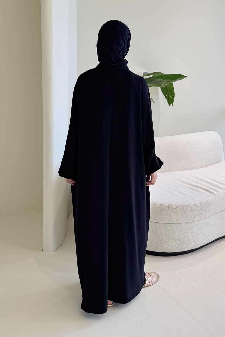 Mahya Seyyar Başörtülü Penye Elbise - Siyah