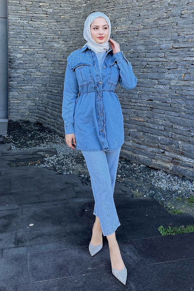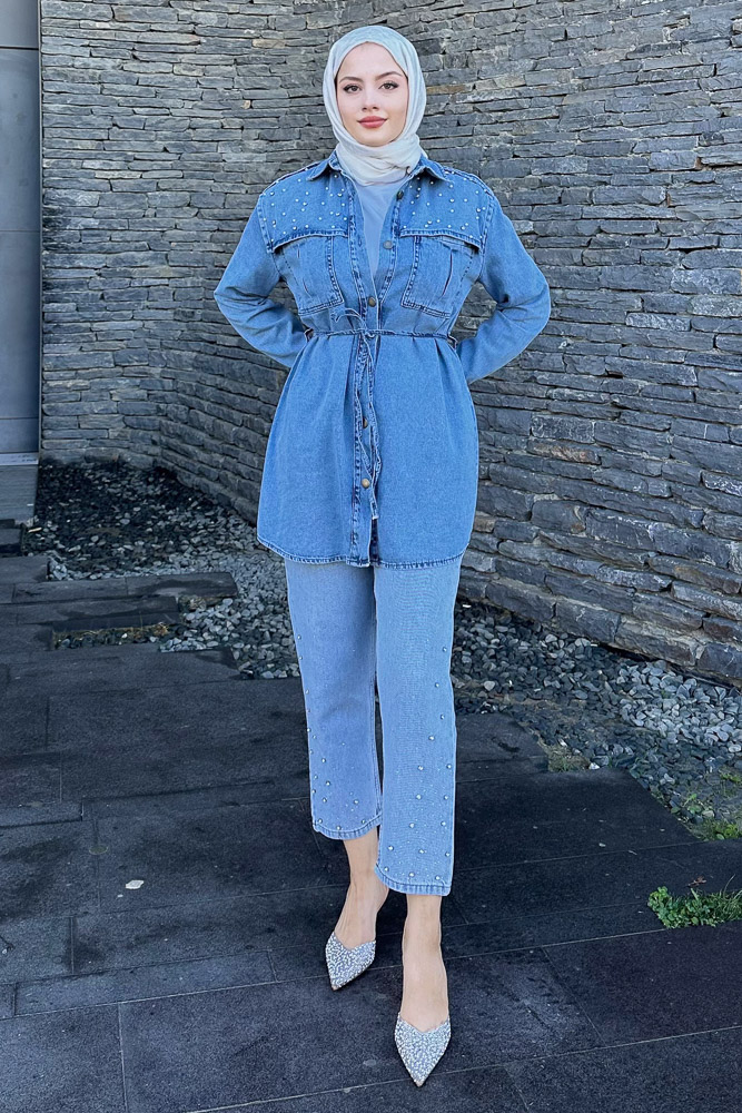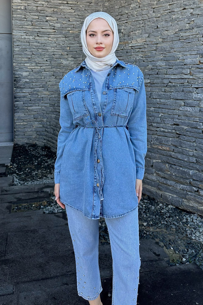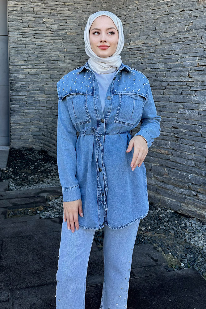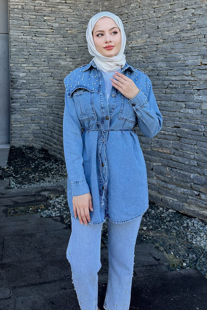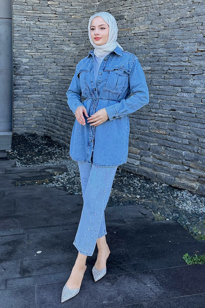 Kumaş: Denim Kalıp: Regular Uzunluk: 82 cm 1 Beden Göğüs Ölçüsü: 100 cm *Seyyar kemeri mevcuttur.