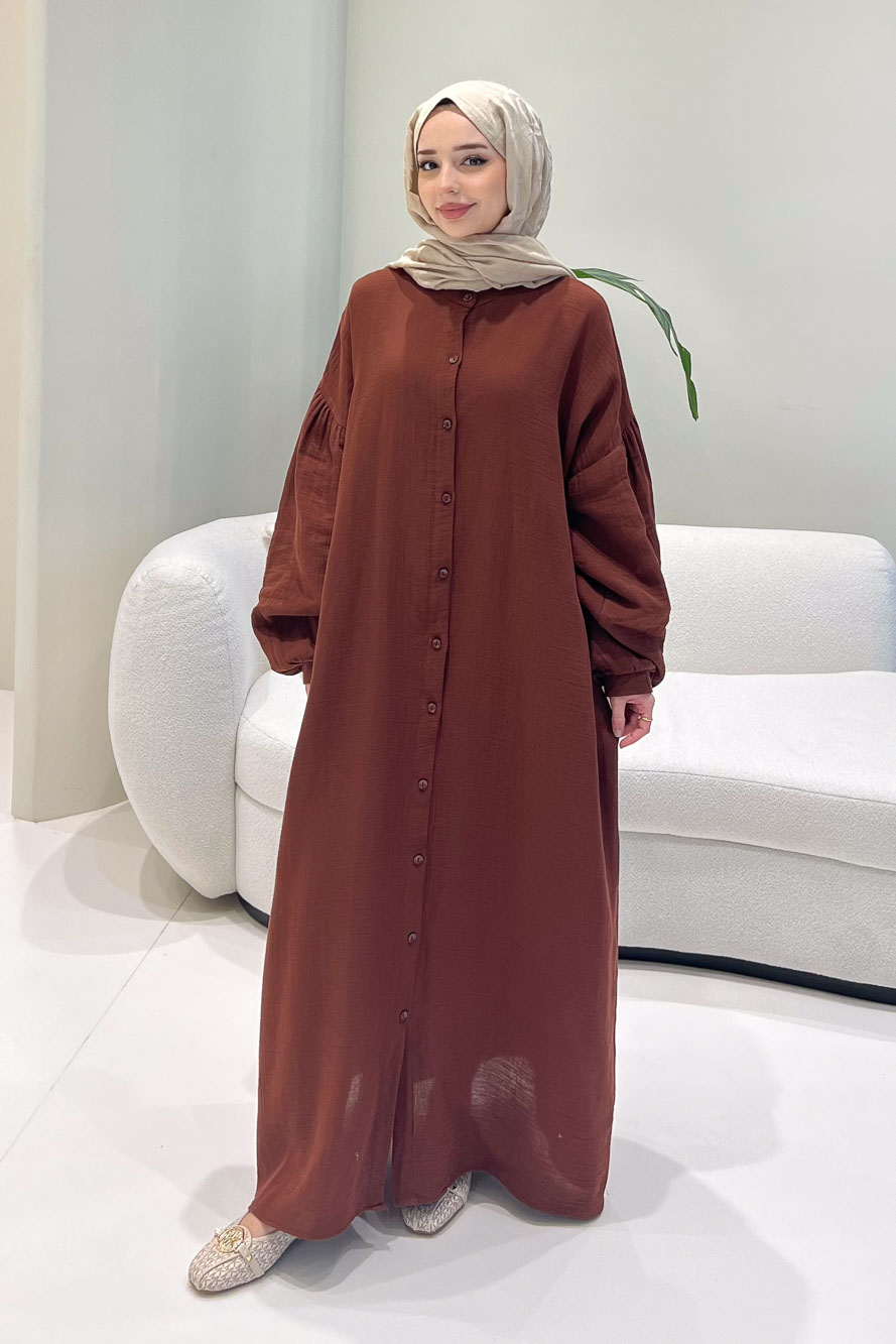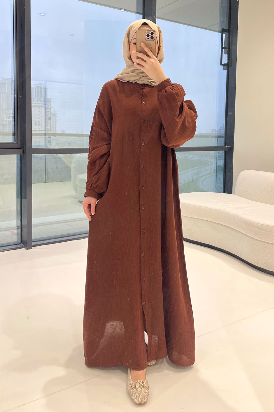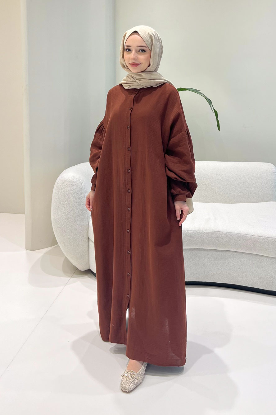 Meliora Müslin Tam Boy Düğmeli Elbise - Kahverengi