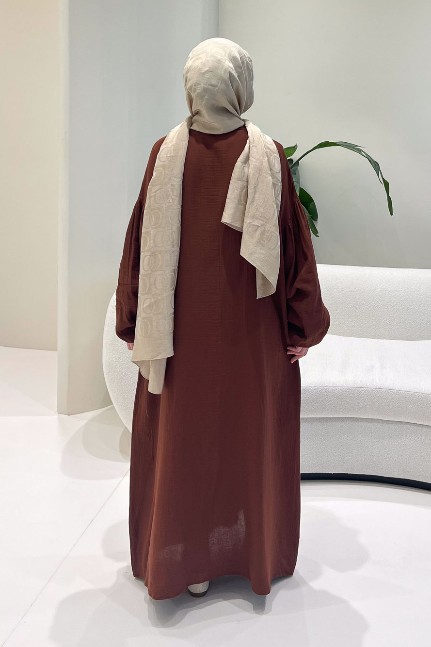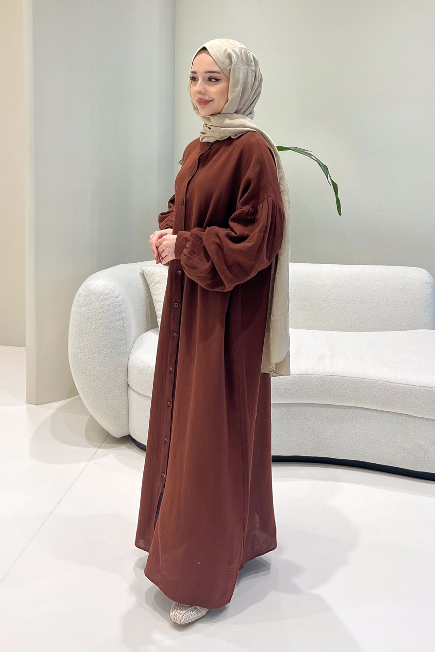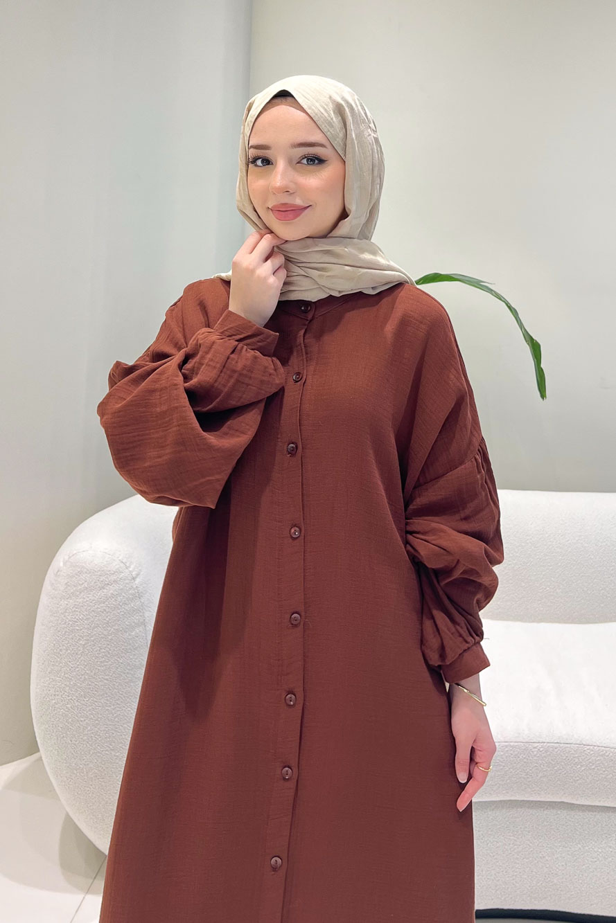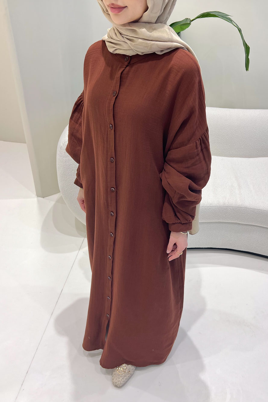 Meliora Müslin Tam Boy Düğmeli Elbise - Kahverengi