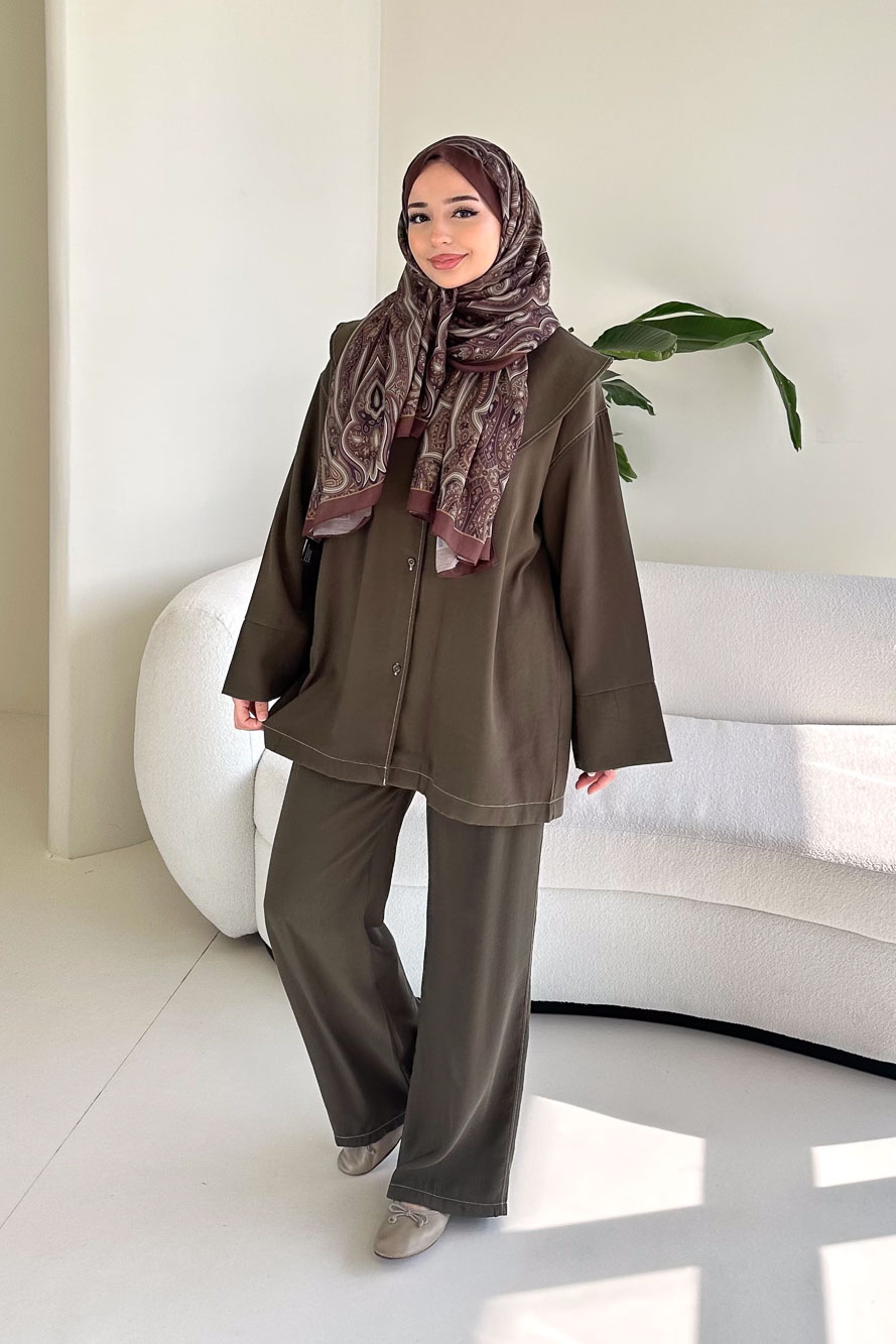Zarif mendil yaka detayı ve doğal tencel dokusuyla modern ve rahat bir stil sunar. Günlük kombinlerde hem konfor hem şıklık sağlayan zamansız bir tasarımdır.
