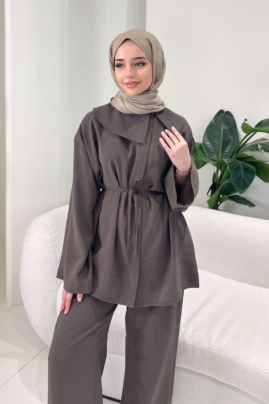 Modern ve zarif tasarımıyla günlük stilinize şık bir dokunuş katar. Viskon ağırlıklı kumaşı sayesinde hafif ve akıcı bir yapıya sahiptir, gün boyu konforlu kullanım sunar.