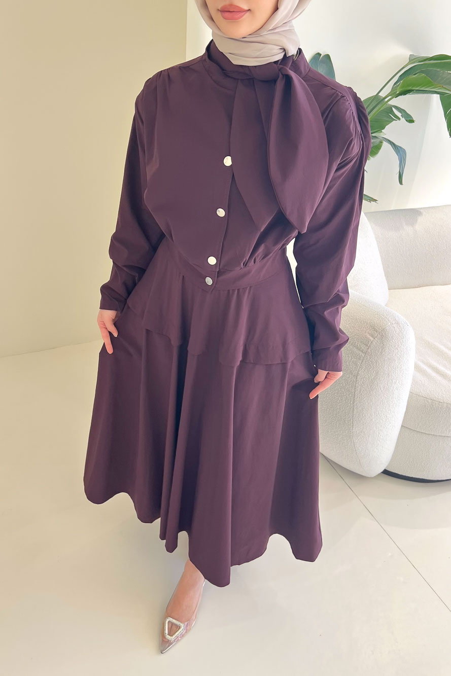 Lumi Gizli Fermuarlı Etekli Takım - Bordo