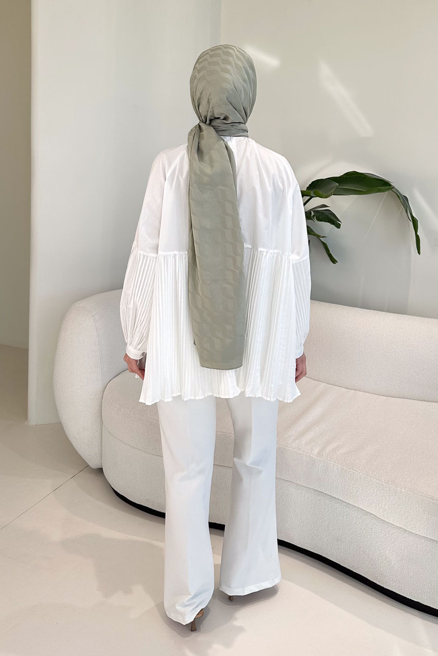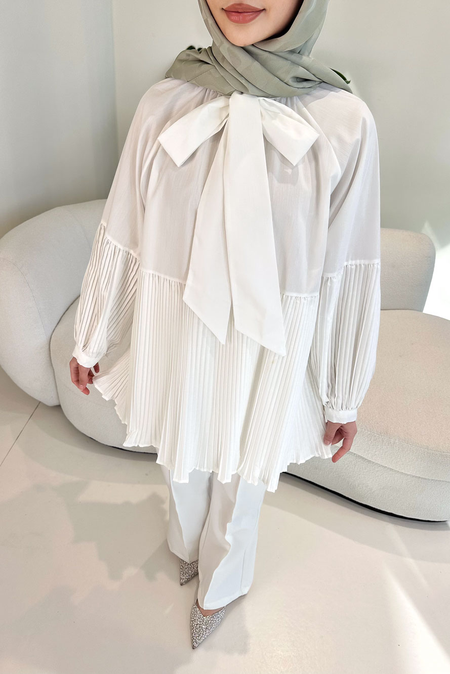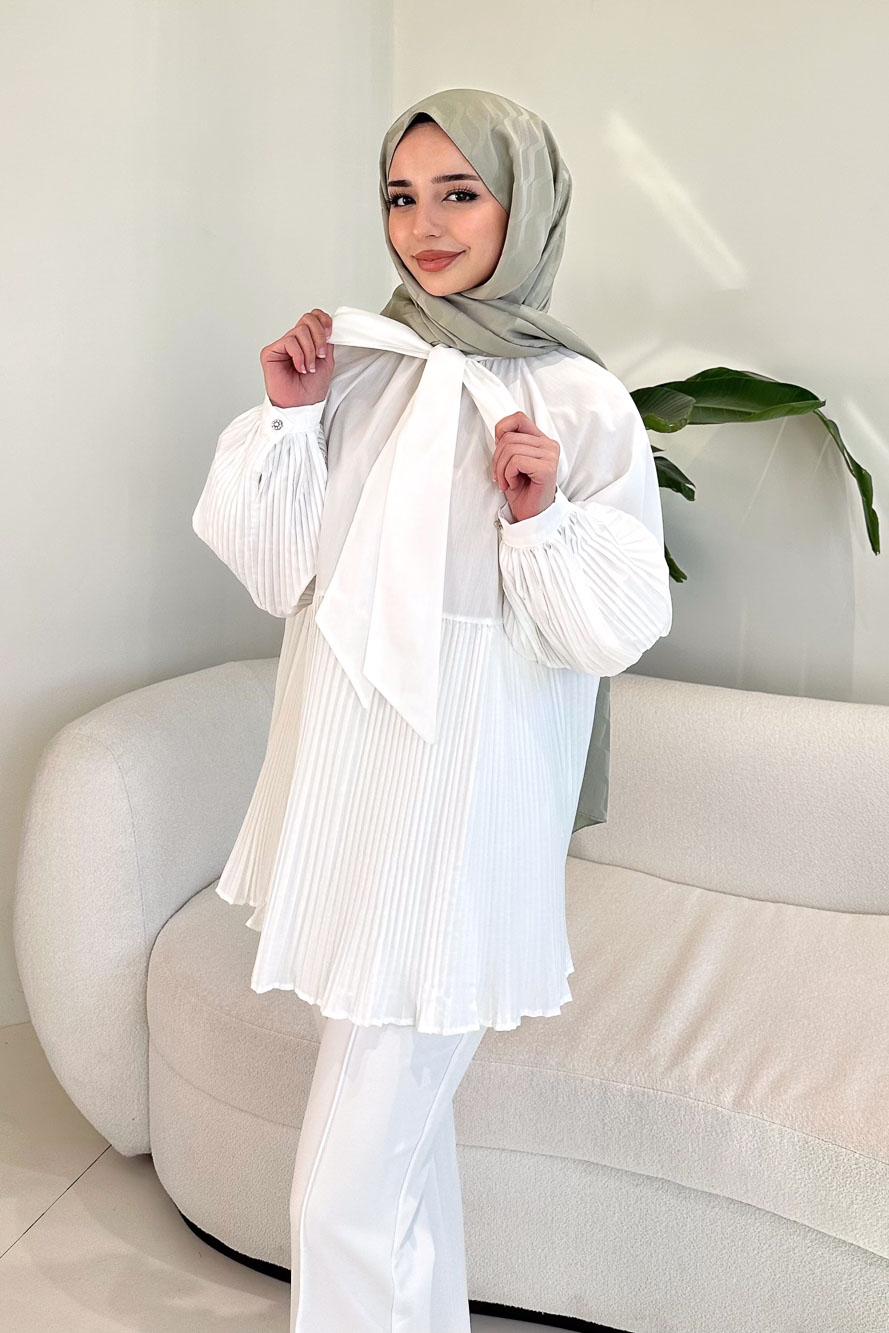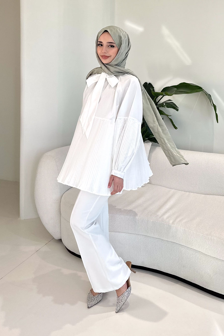 Şal Detaylı Yırtmaçlı Bluz - Ekru