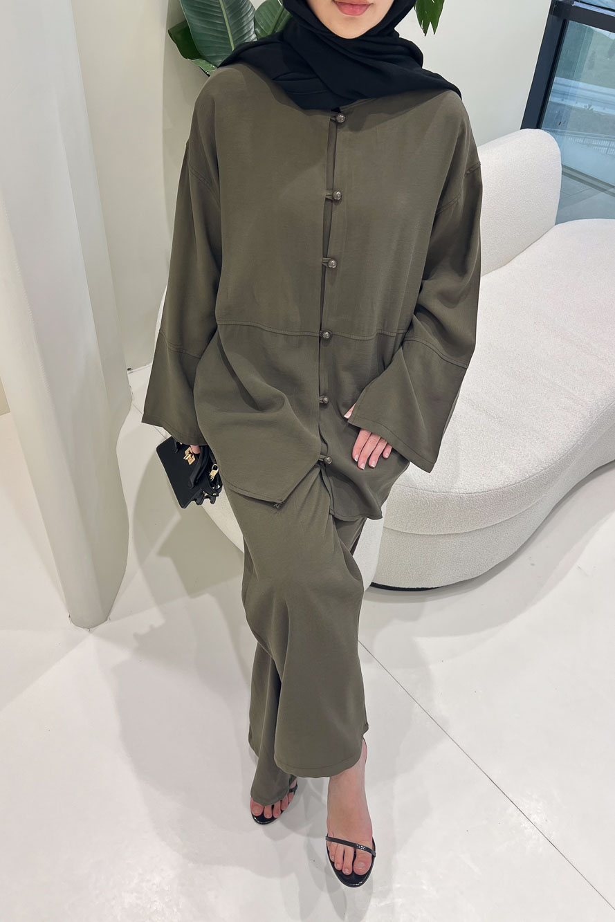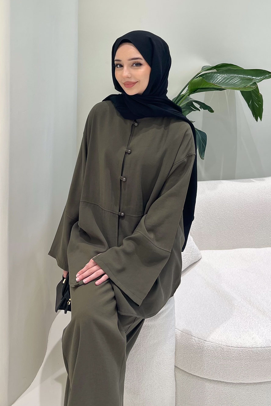 Doğal tencel dokusu ve rahat kalıbıyla gün boyu konfor sunarken, modern düğme detaylarıyla spor-şık bir stil oluşturur.