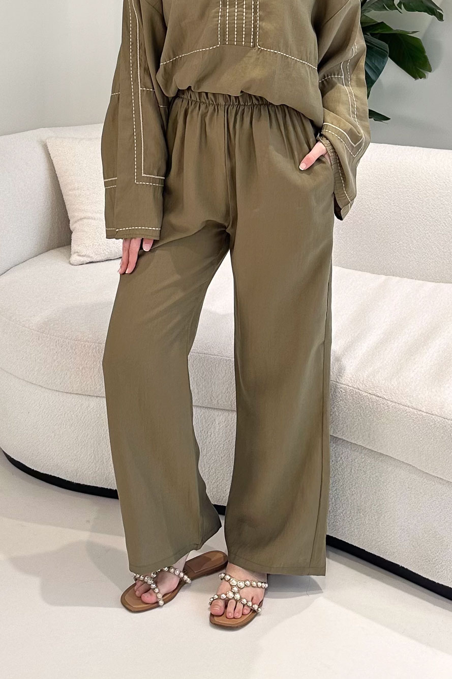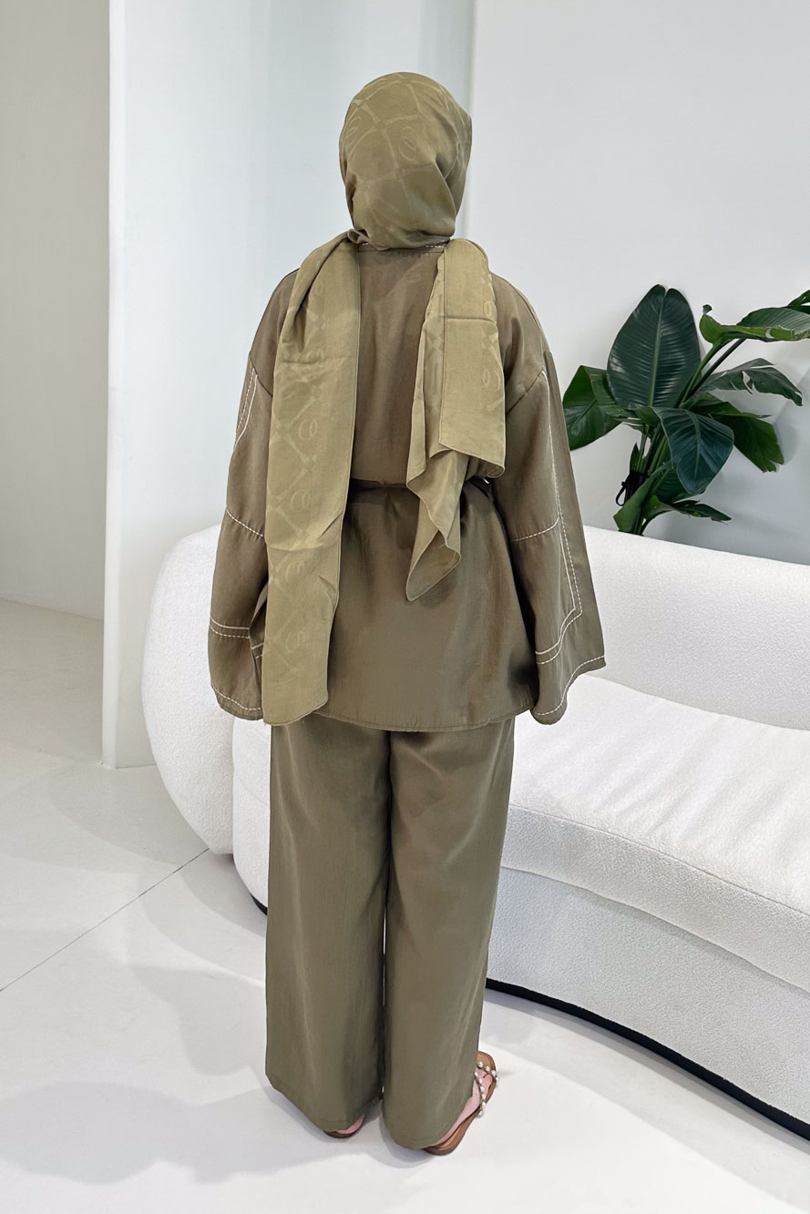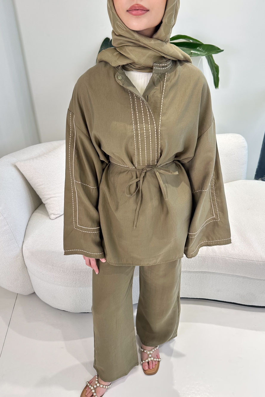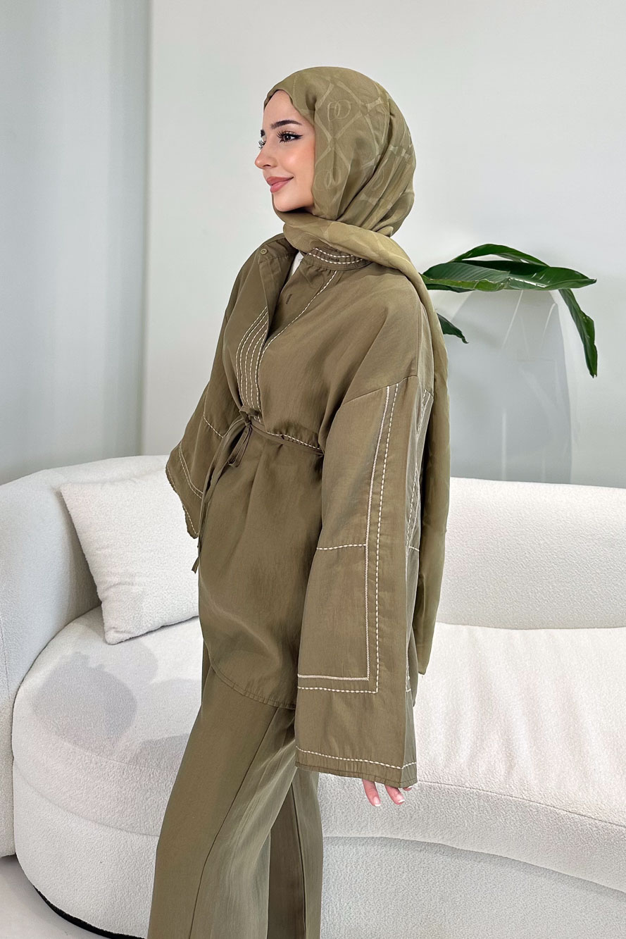 Nakış Detaylı Tesla Takım - Haki