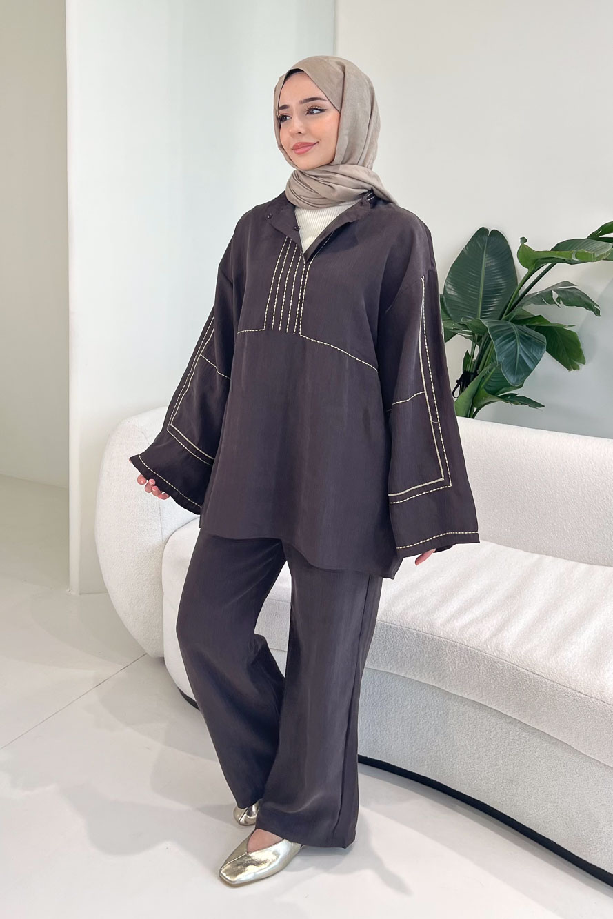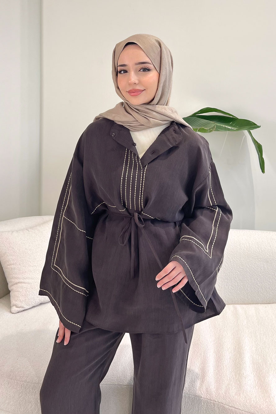 Modern ve zarif tasarımıyla stilinize sofistike bir dokunuş katar. Tencel ağırlıklı kumaşı sayesinde hafif, nefes alabilen ve konforlu bir kullanım sunar.