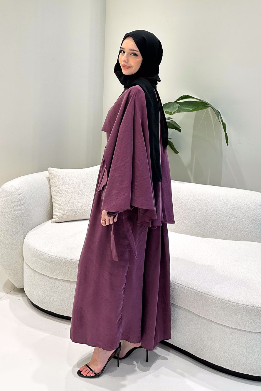 Arkası fermuarlıdır. Sabit pelerinlidir. Kolları bağcık detaylıdır. Manken üzerinde S bedendir.