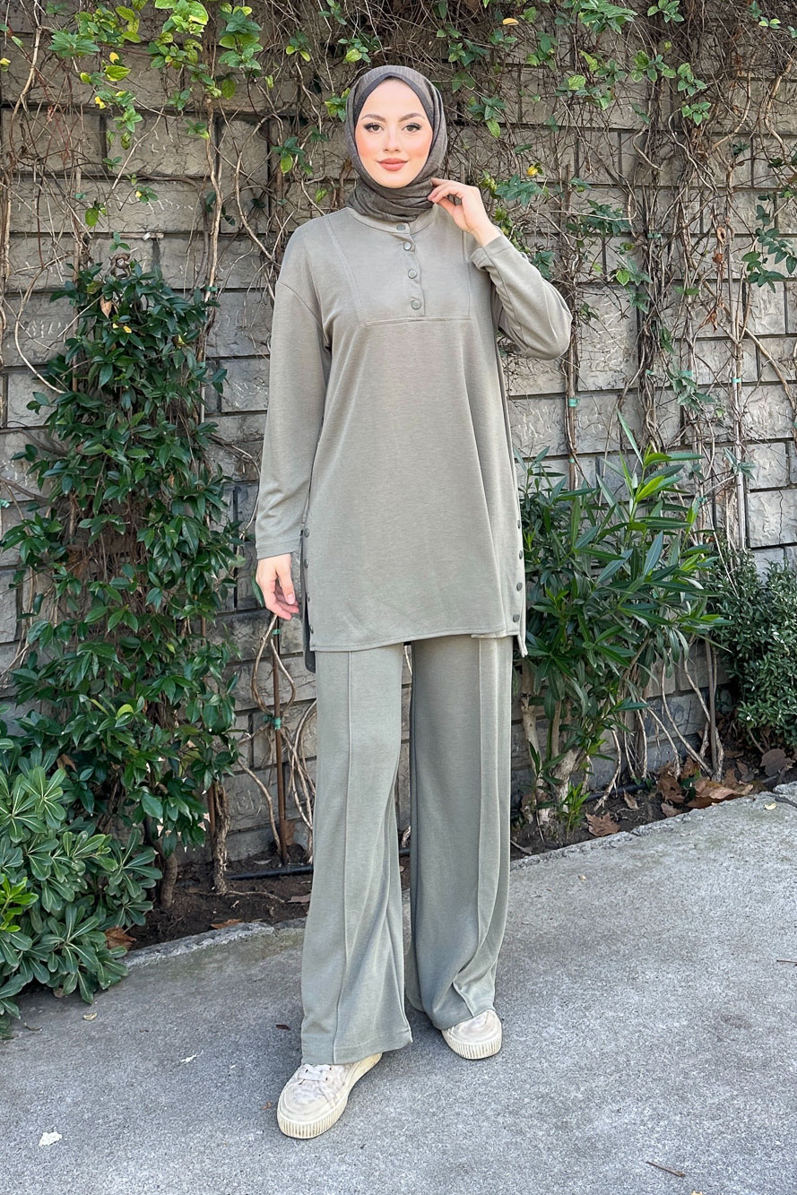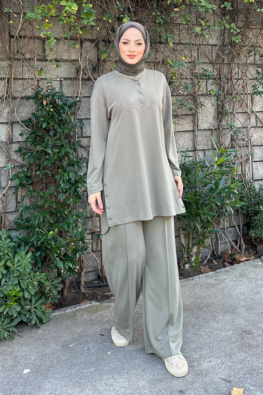 Kanguru Cepli Kesik Detaylı Takım - Haki