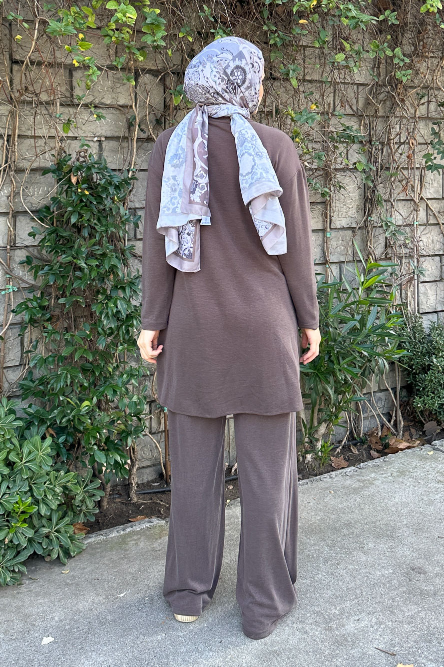 Plazzo Pantolonlu Cupra Takım - Kahverengi