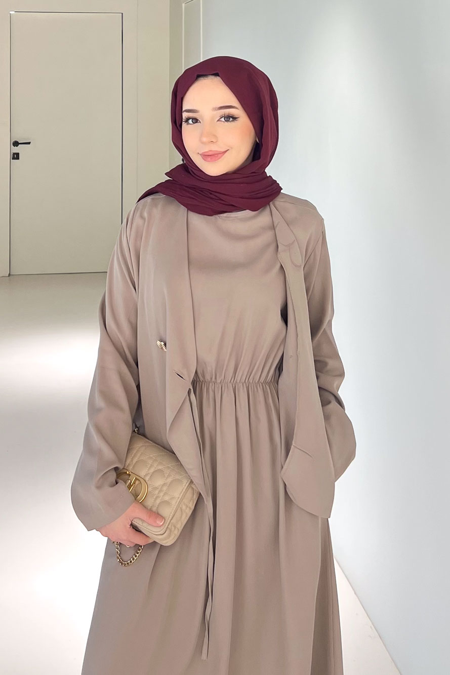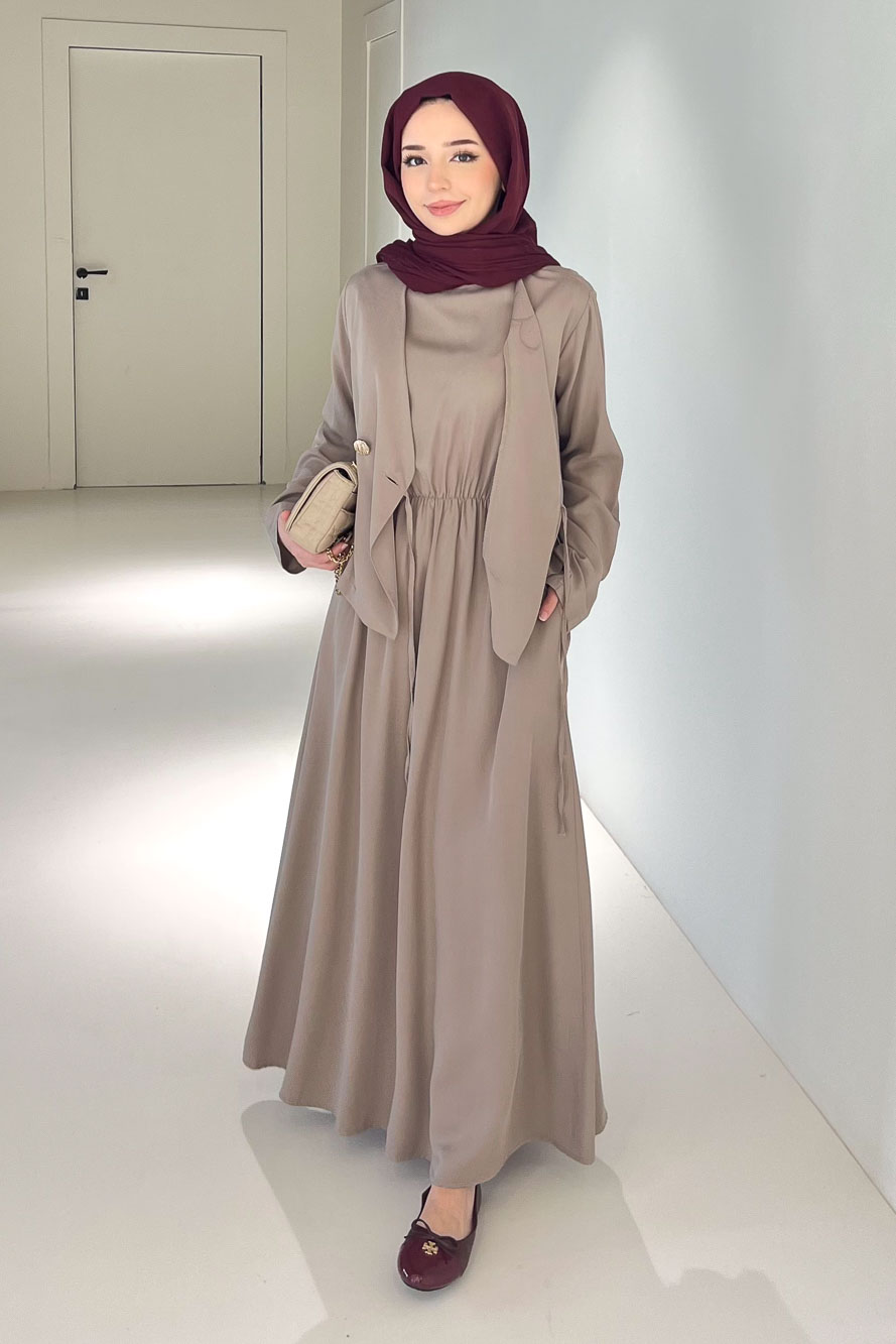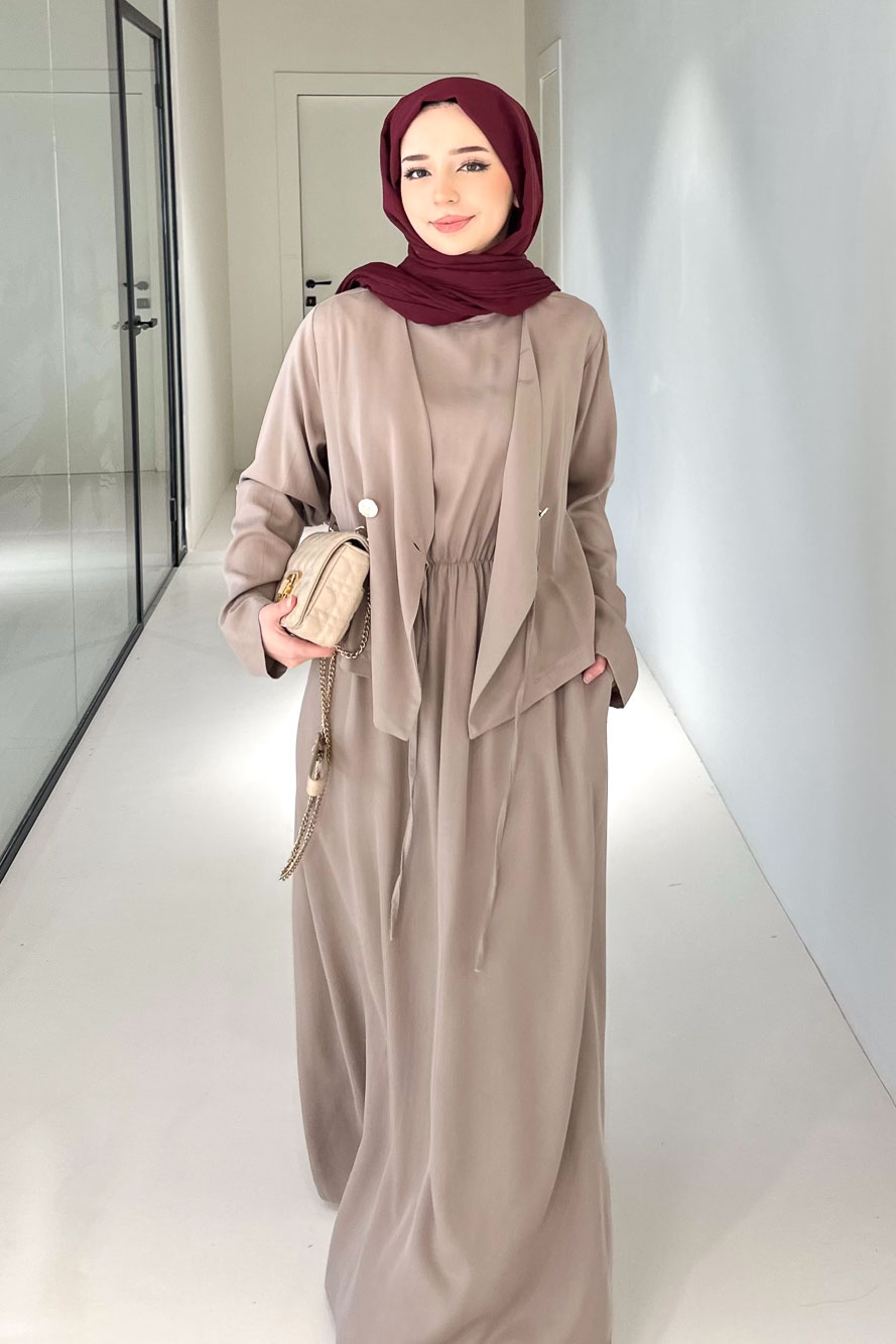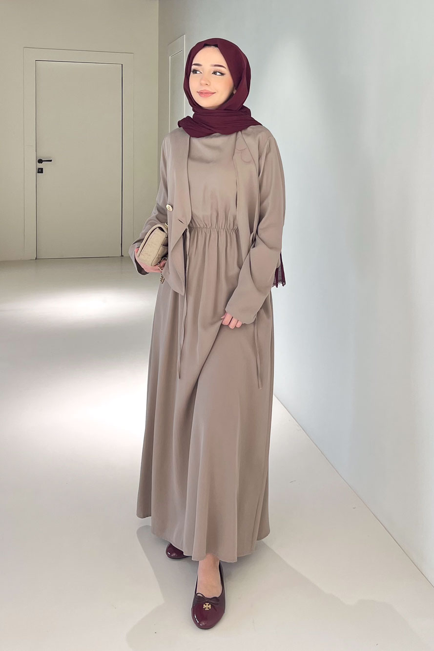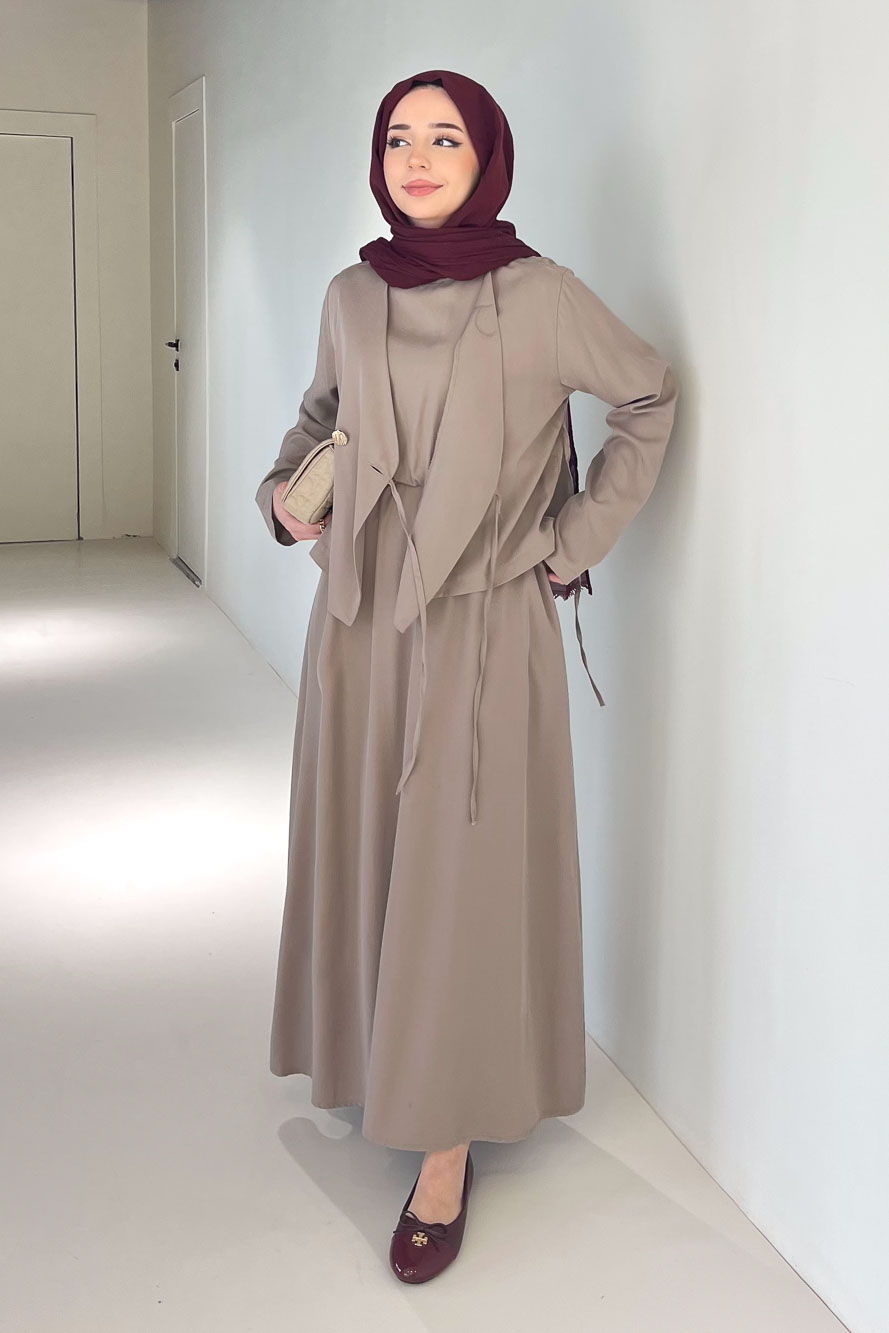 Novera Jileli Elbise Takım - Vizon