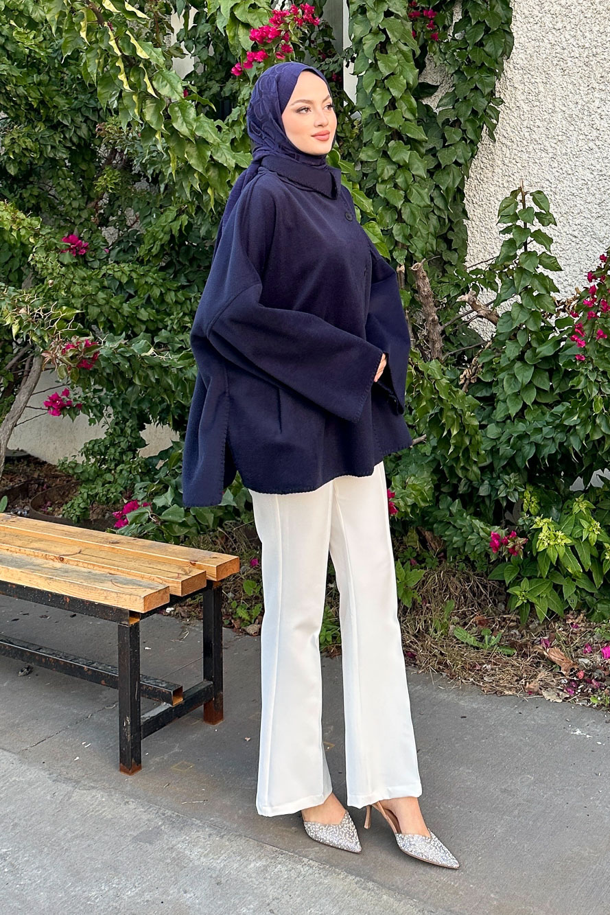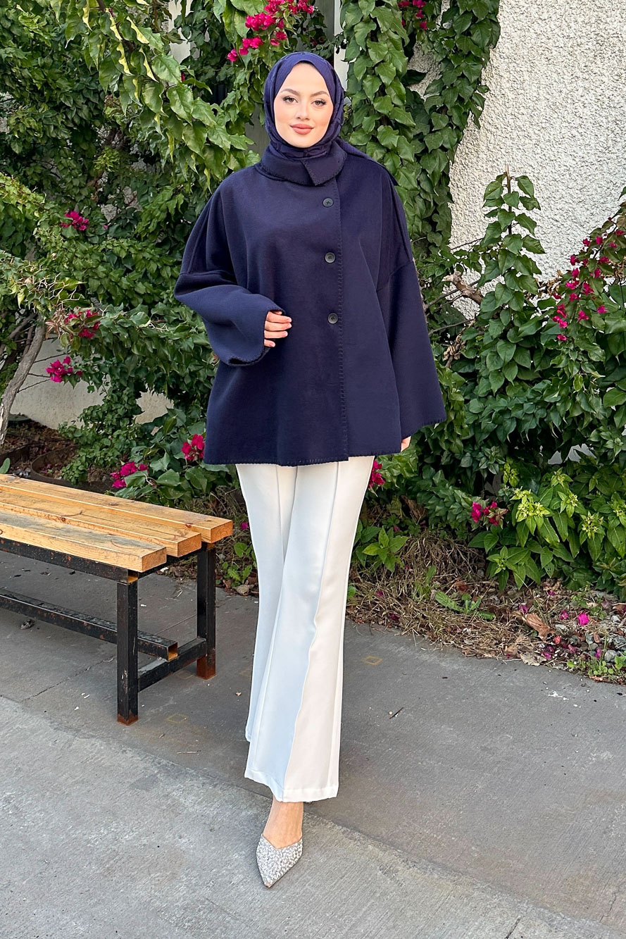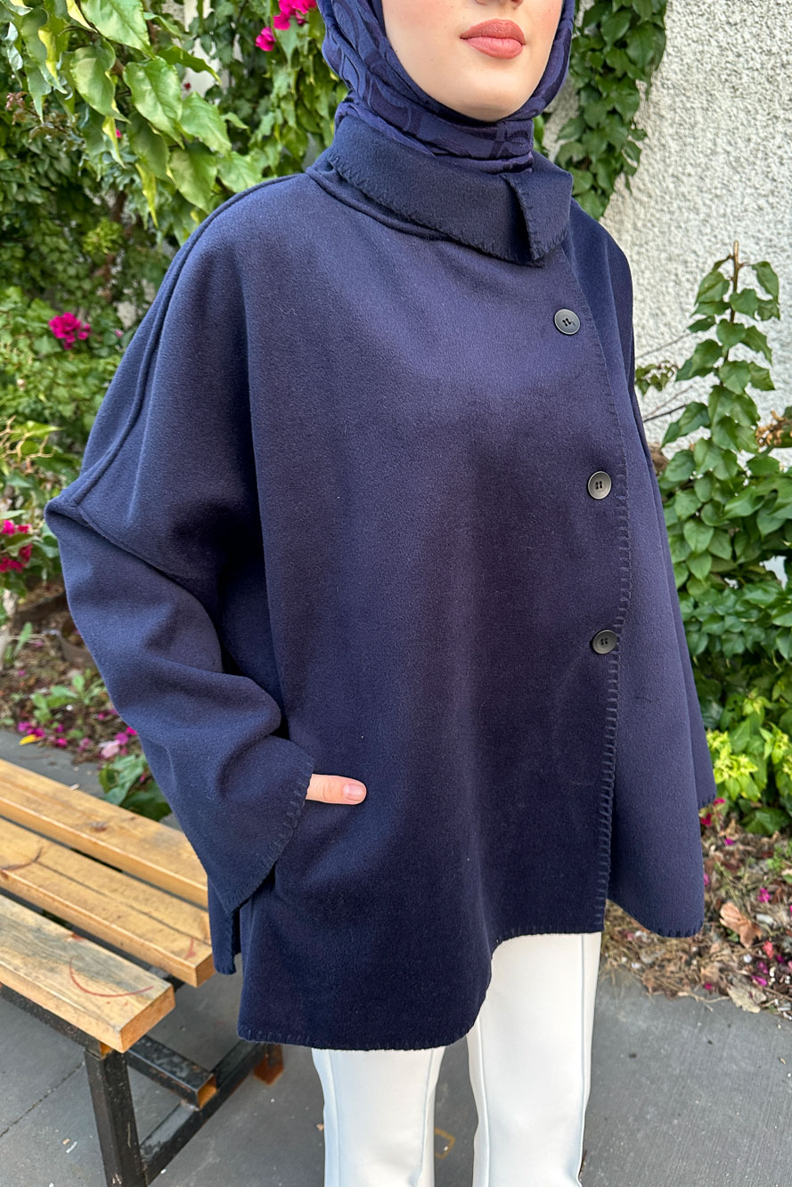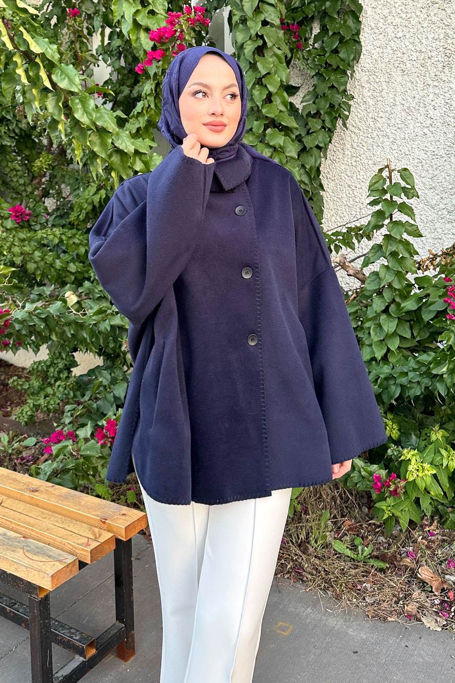 Narin Tam Boy Kaşe Kaban - Lacivert