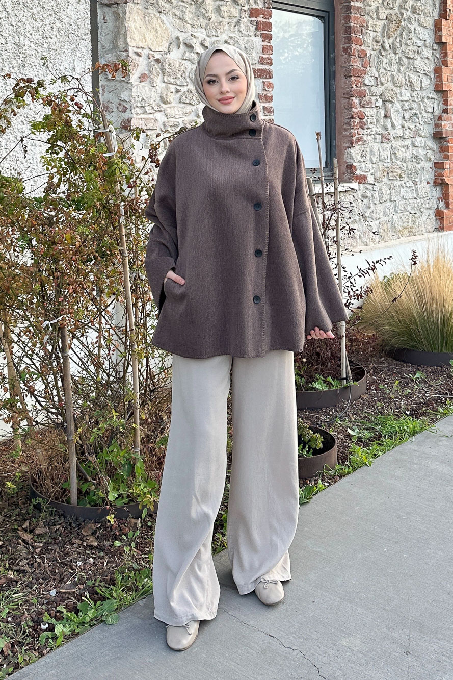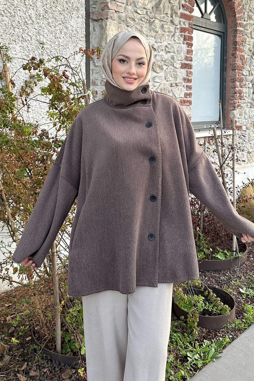 TriLine 3 Düğmeli Kaşe Kaban - Kahverengi