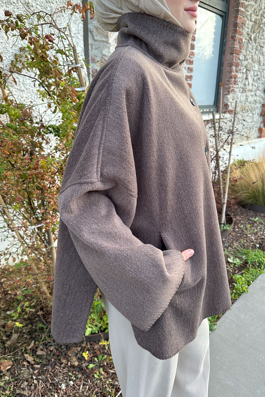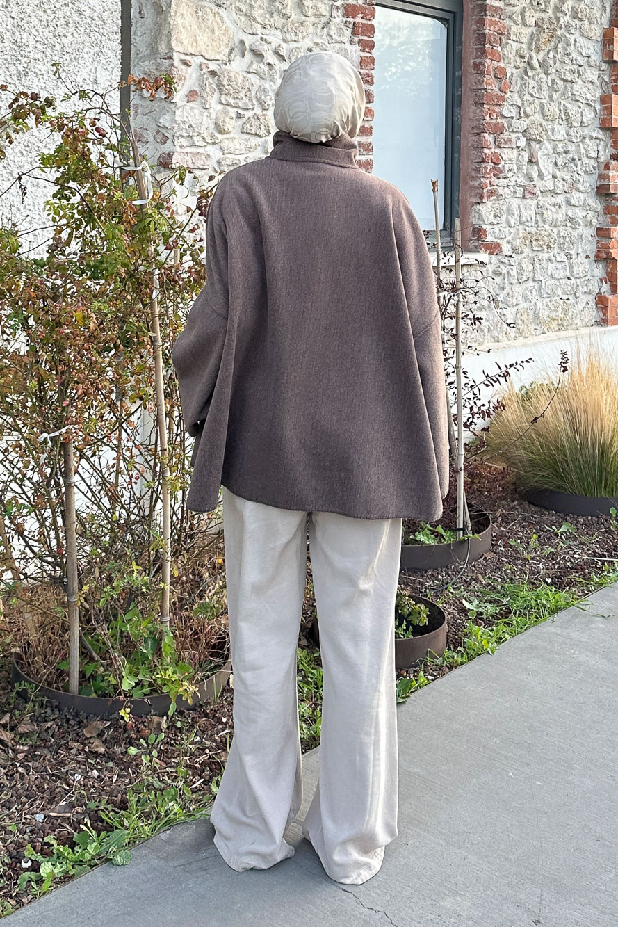Kumaş: Kaşe Kalıp: Oversize Uzunluk: 70 cm Genişlik: 80 cm Astarlıdıır. Seyyar Kemeri vardır.