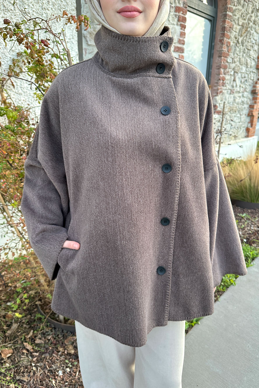 Nua Düğmeli Yırtmaçlı Kısa Kaban - Vizon