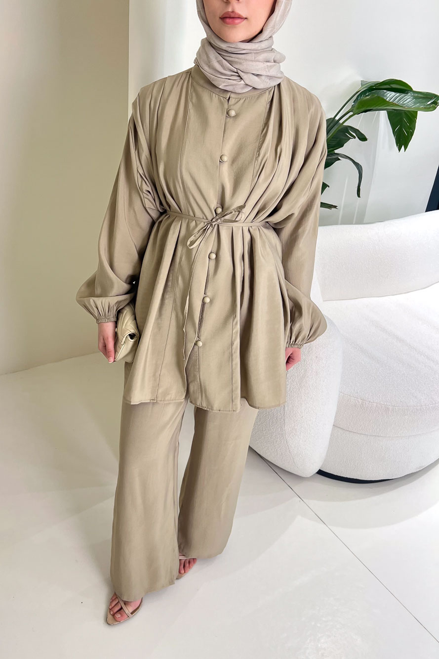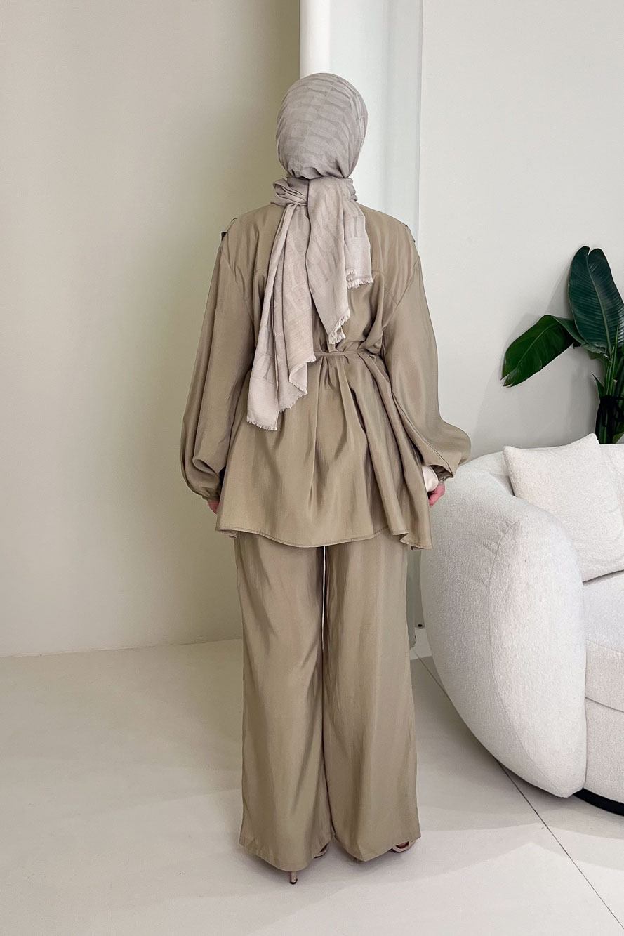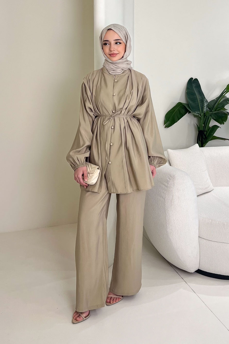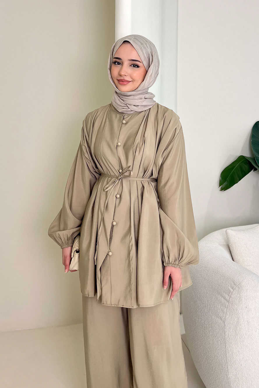 Lumi Gizli Fermuarlı Etekli Takım - Kahverengi
