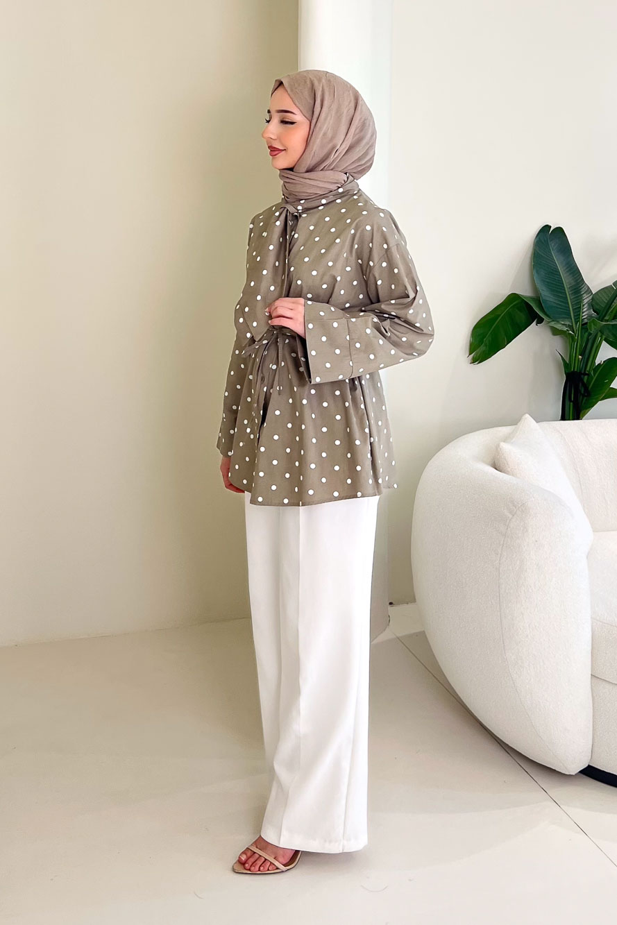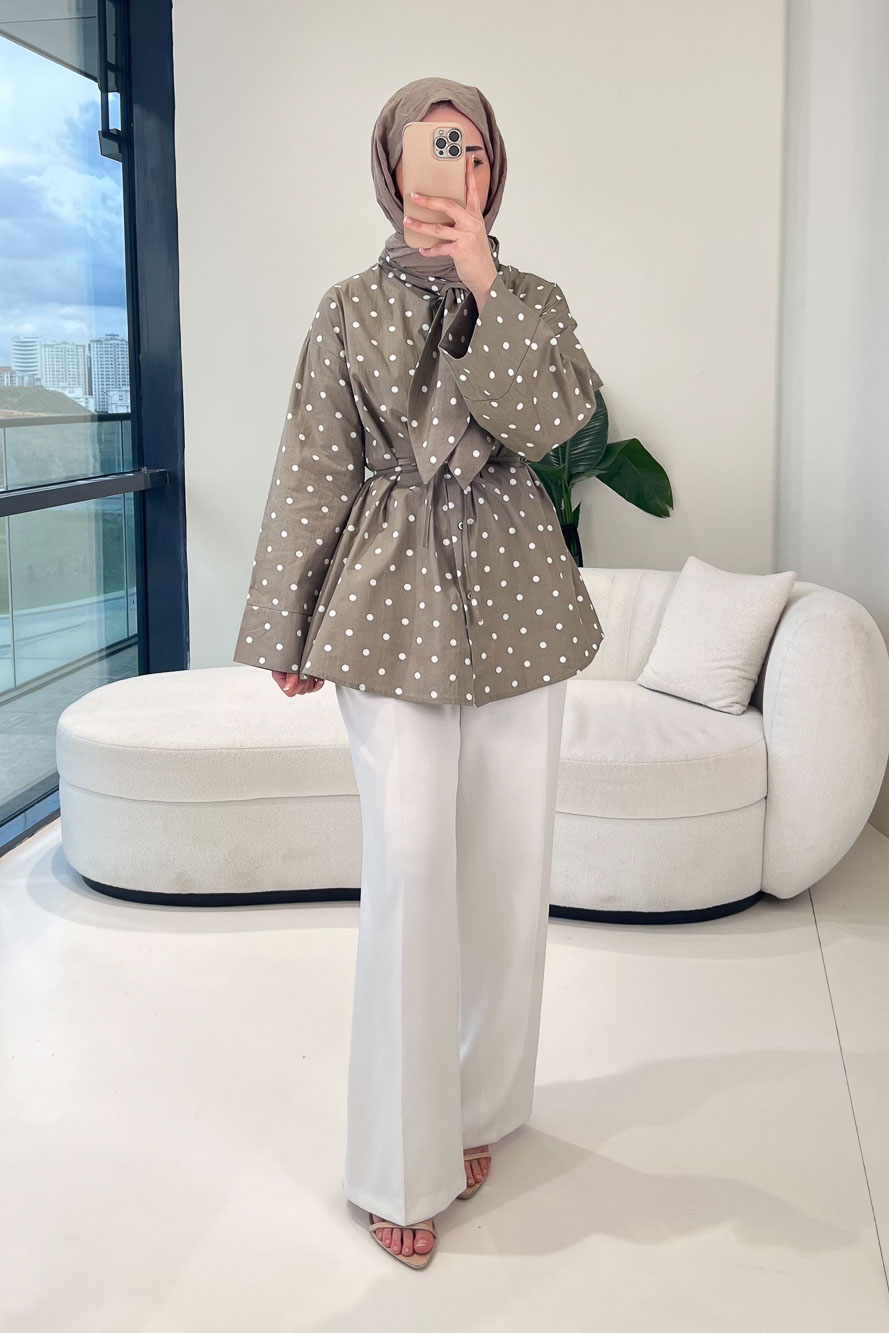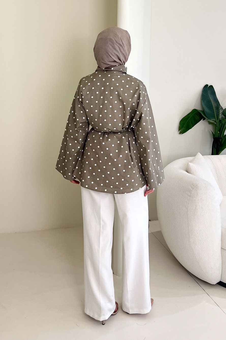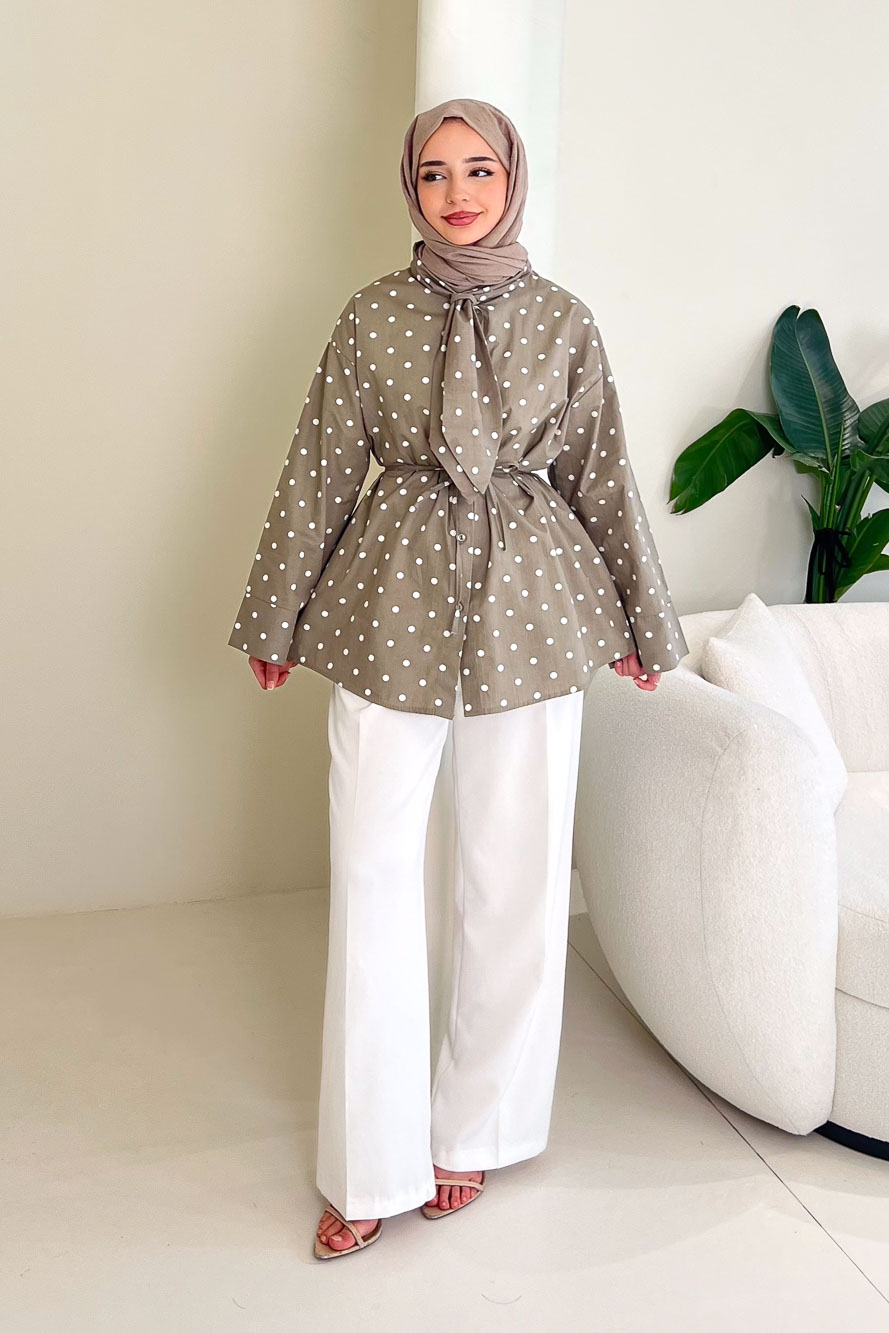 Puantiyeli Bağcık Detaylı Gömlek - Haki