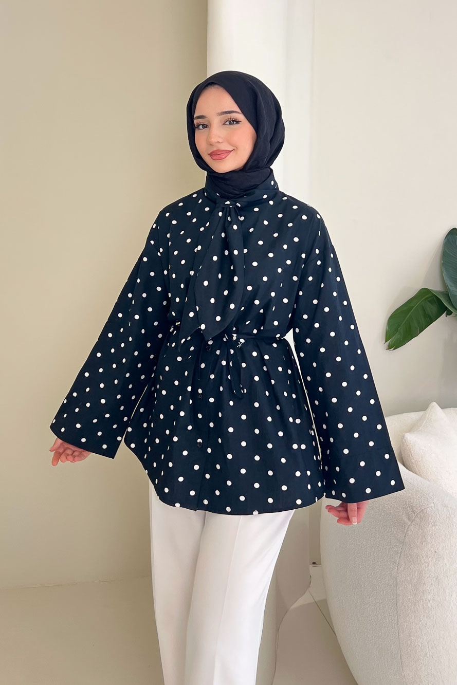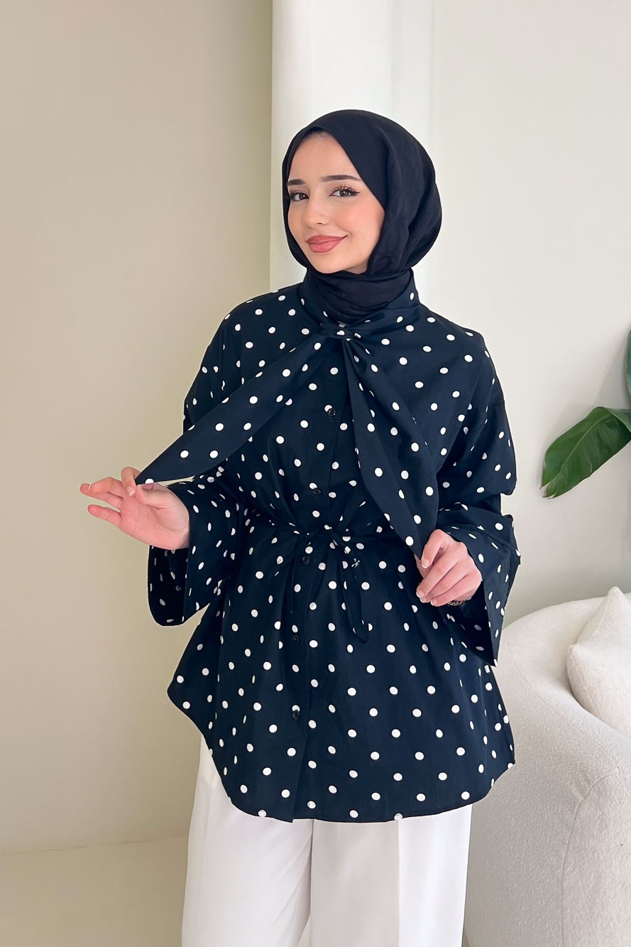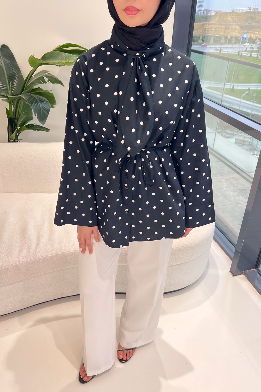 Puantiyeli Bağcık Detaylı Gömlek