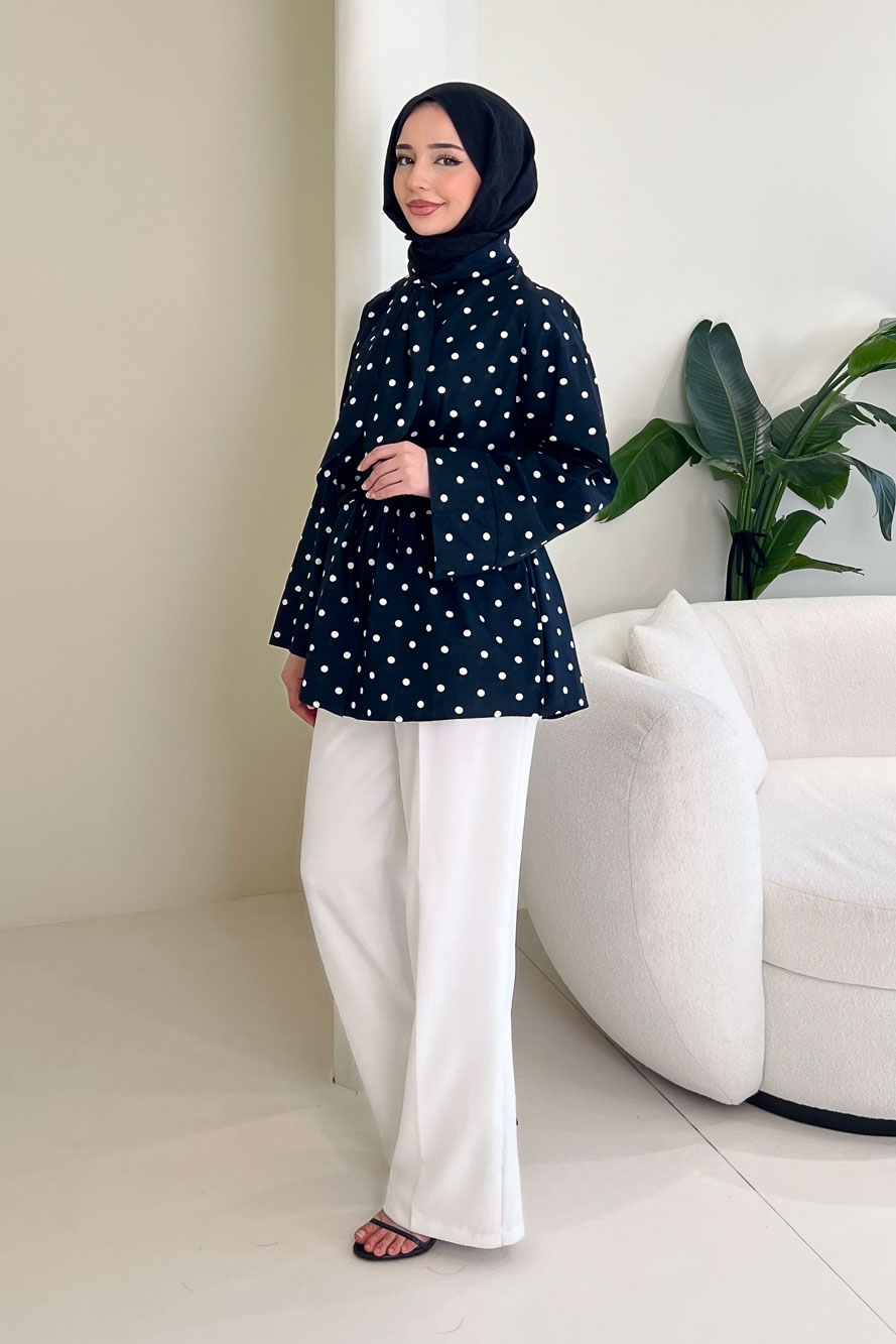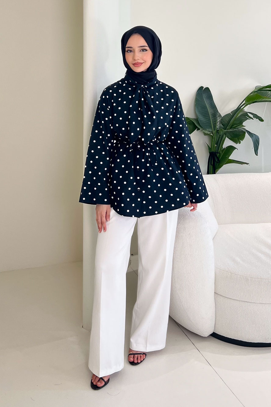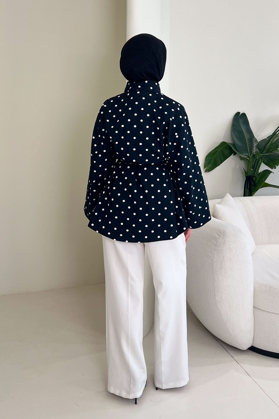 Puantiyeli Bağcık Detaylı Gömlek