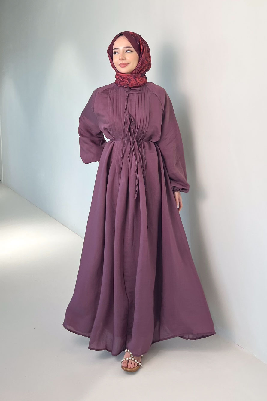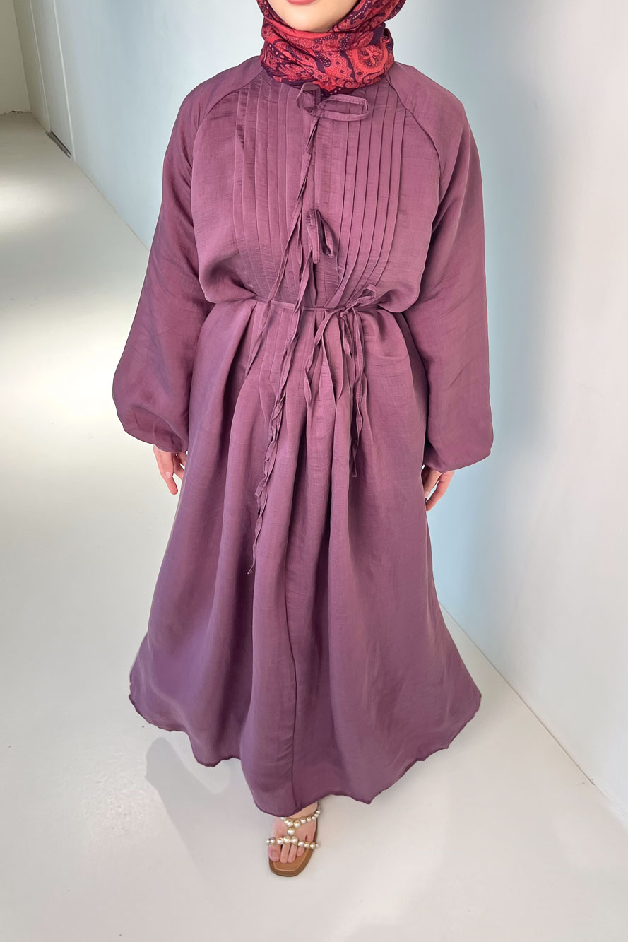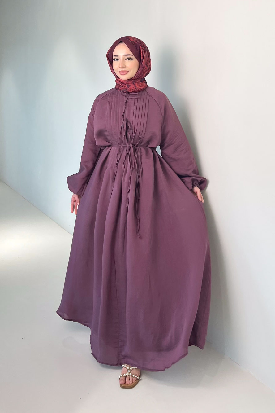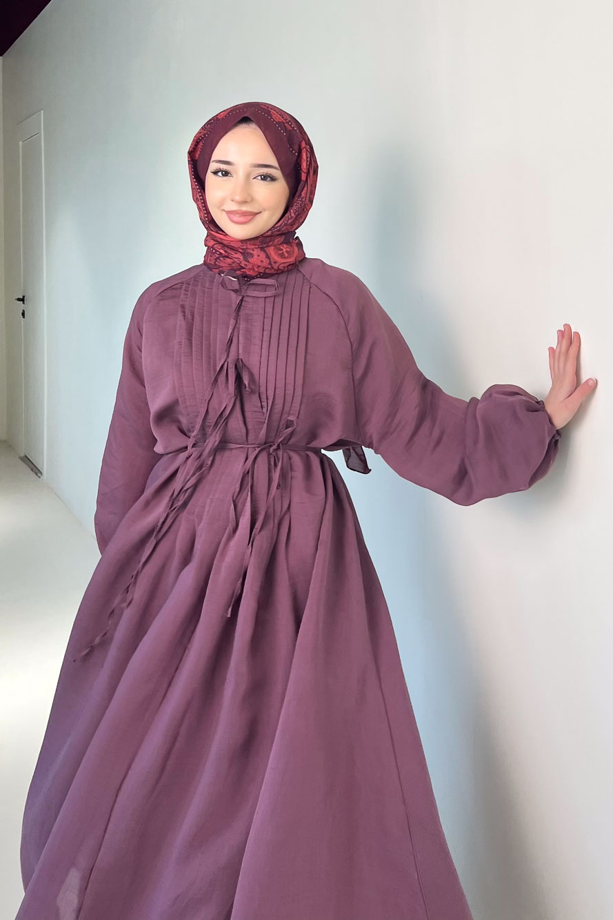 Rei Fiyonk Bağlamalı Nervür Detaylı Elbise - Mürdüm