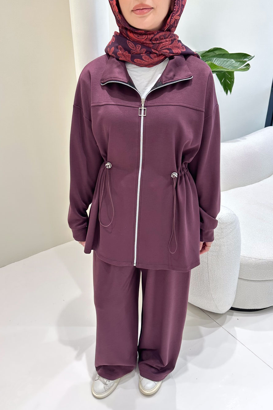 Hürrema Plise Garnili Takım - Mürdüm