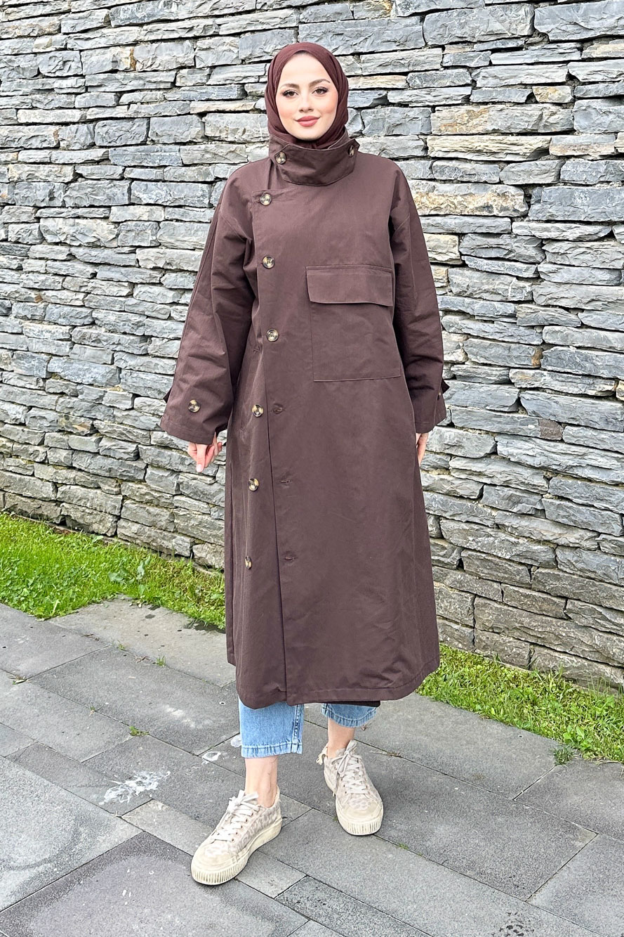 Seine Büyük Cepli Trençkot - Acı Kahve