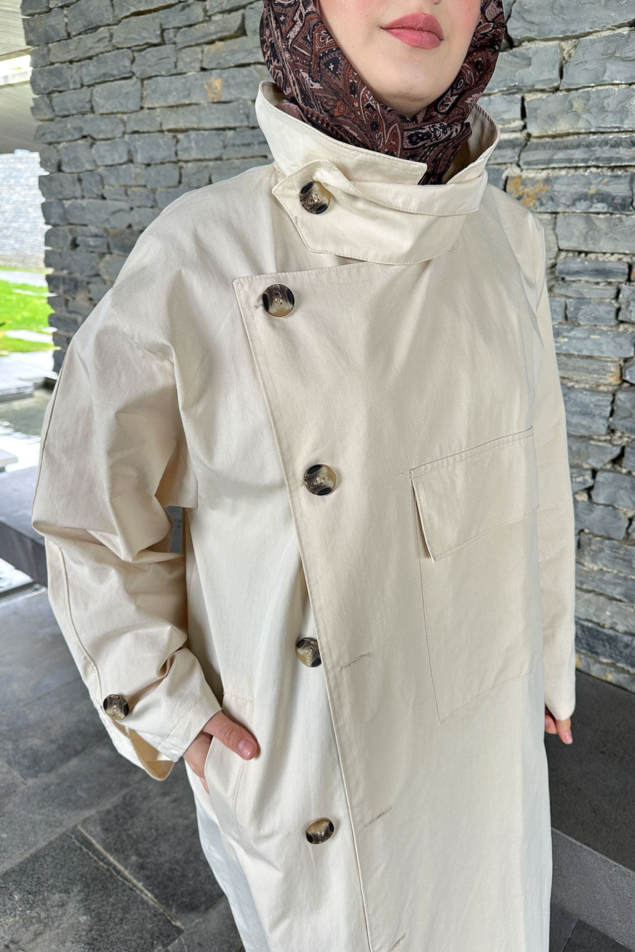 Seine Büyük Cepli Trençkot - Sütlü Kahve