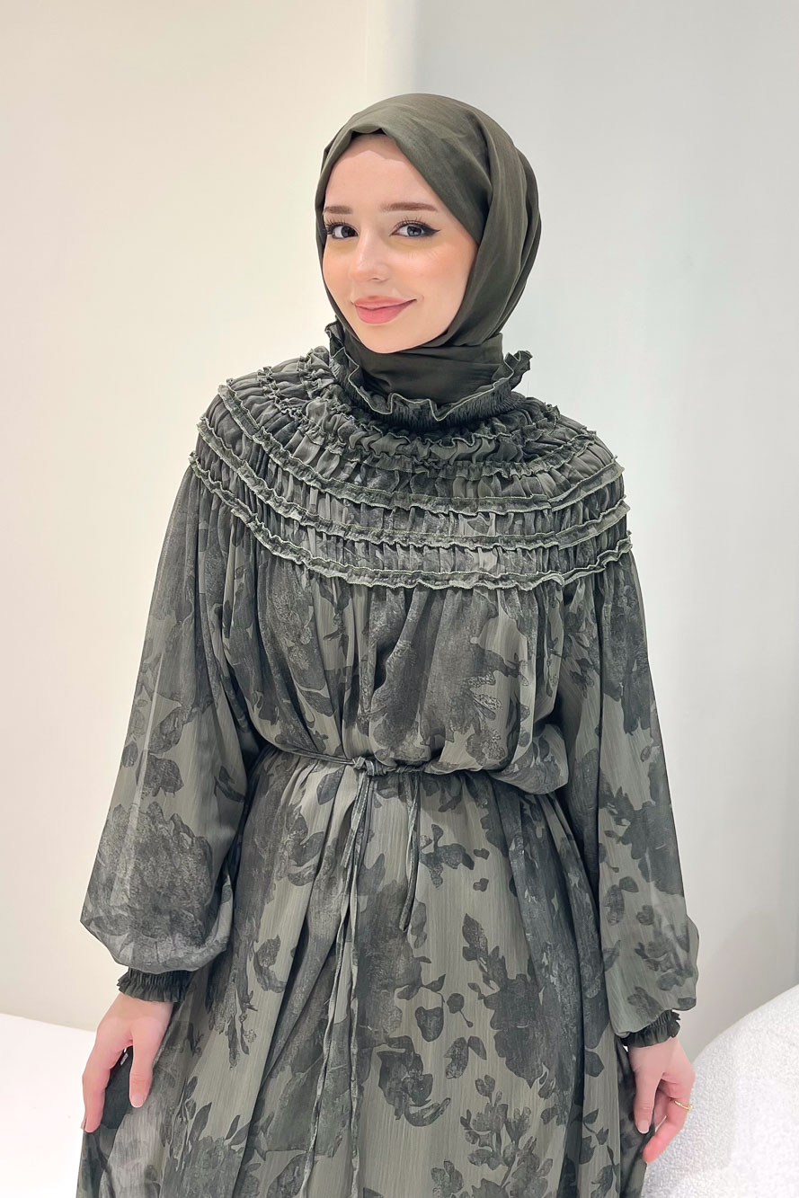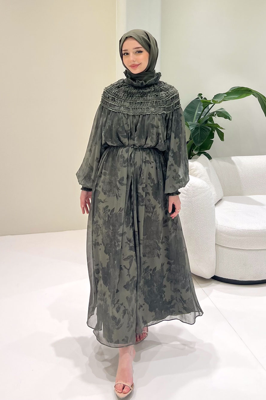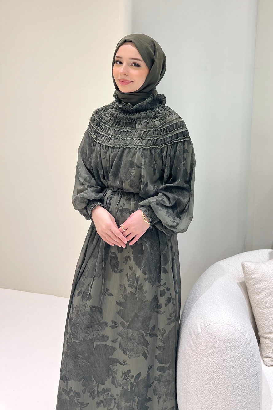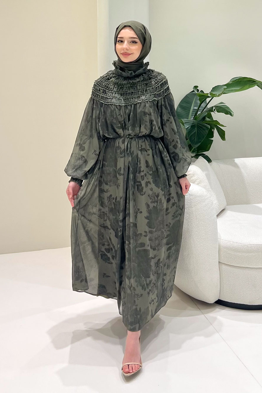 Selvera Gipeli Bağlamalı Elbise - Haki