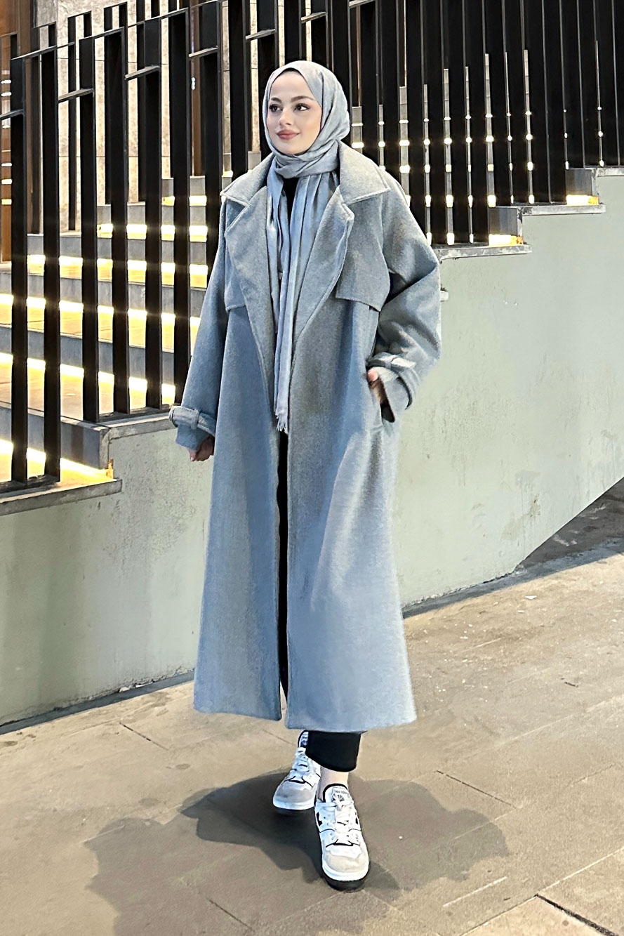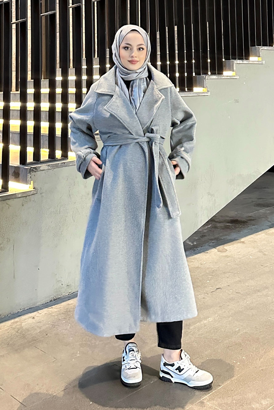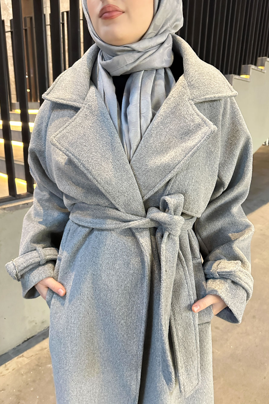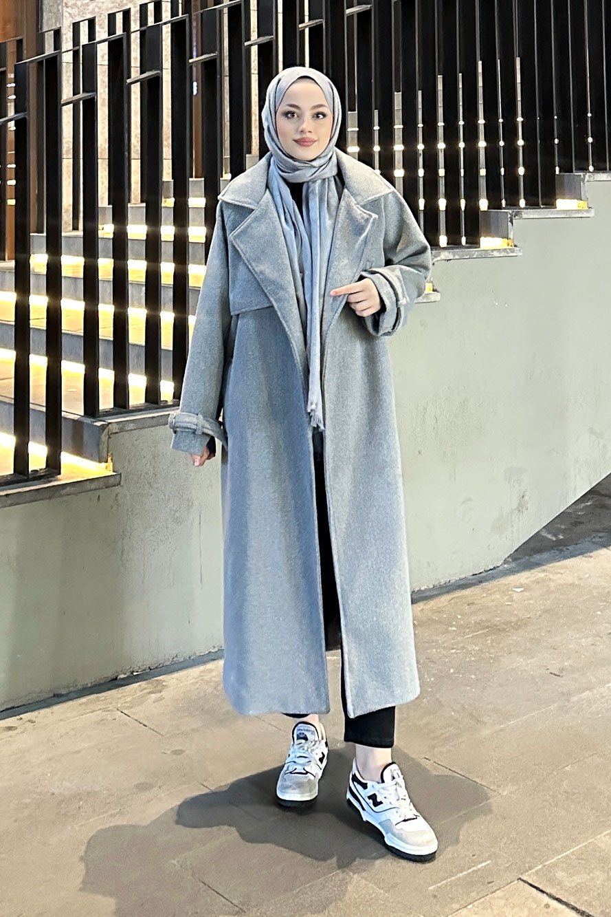Timeless Kaşe Uzun Kaban - Gri