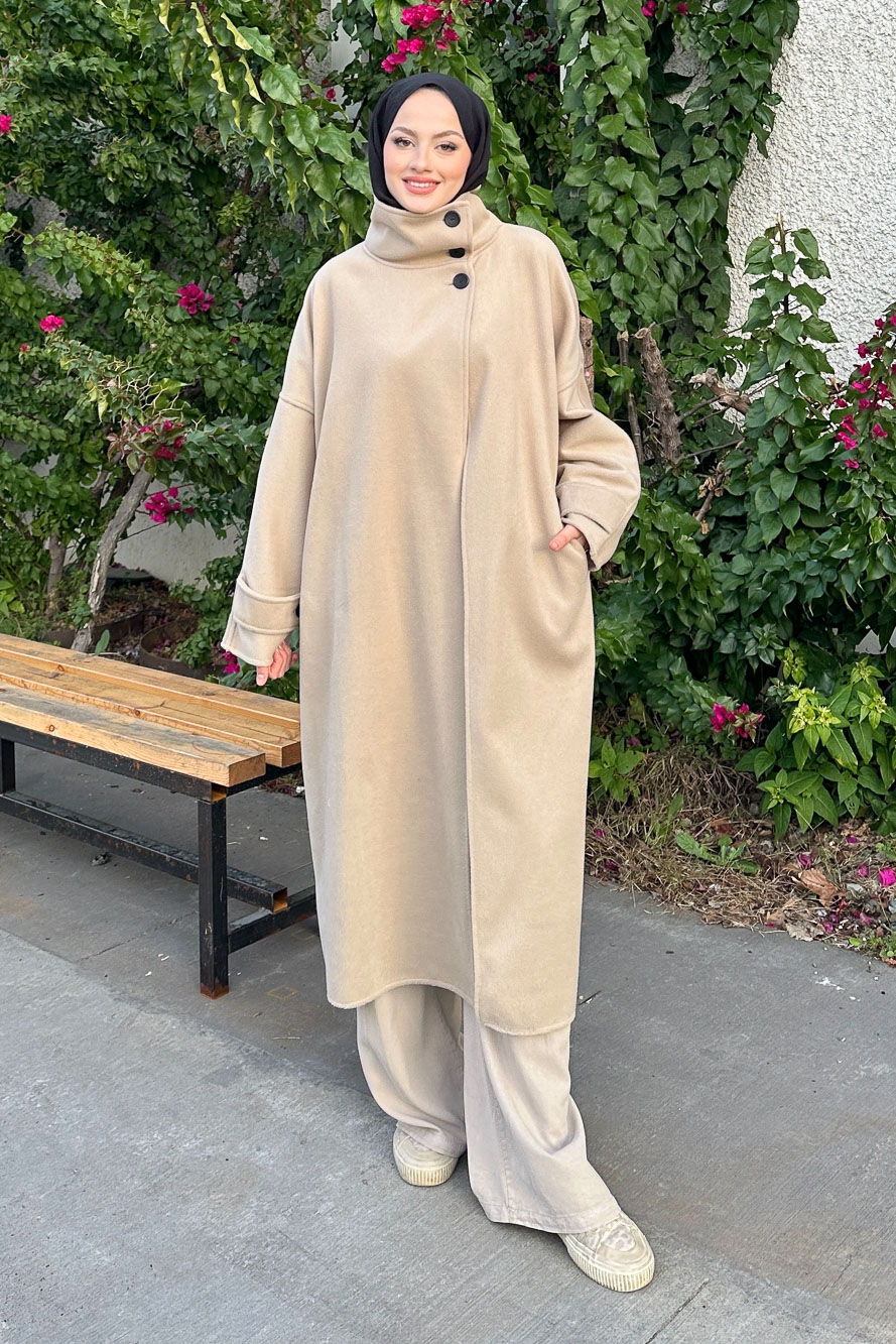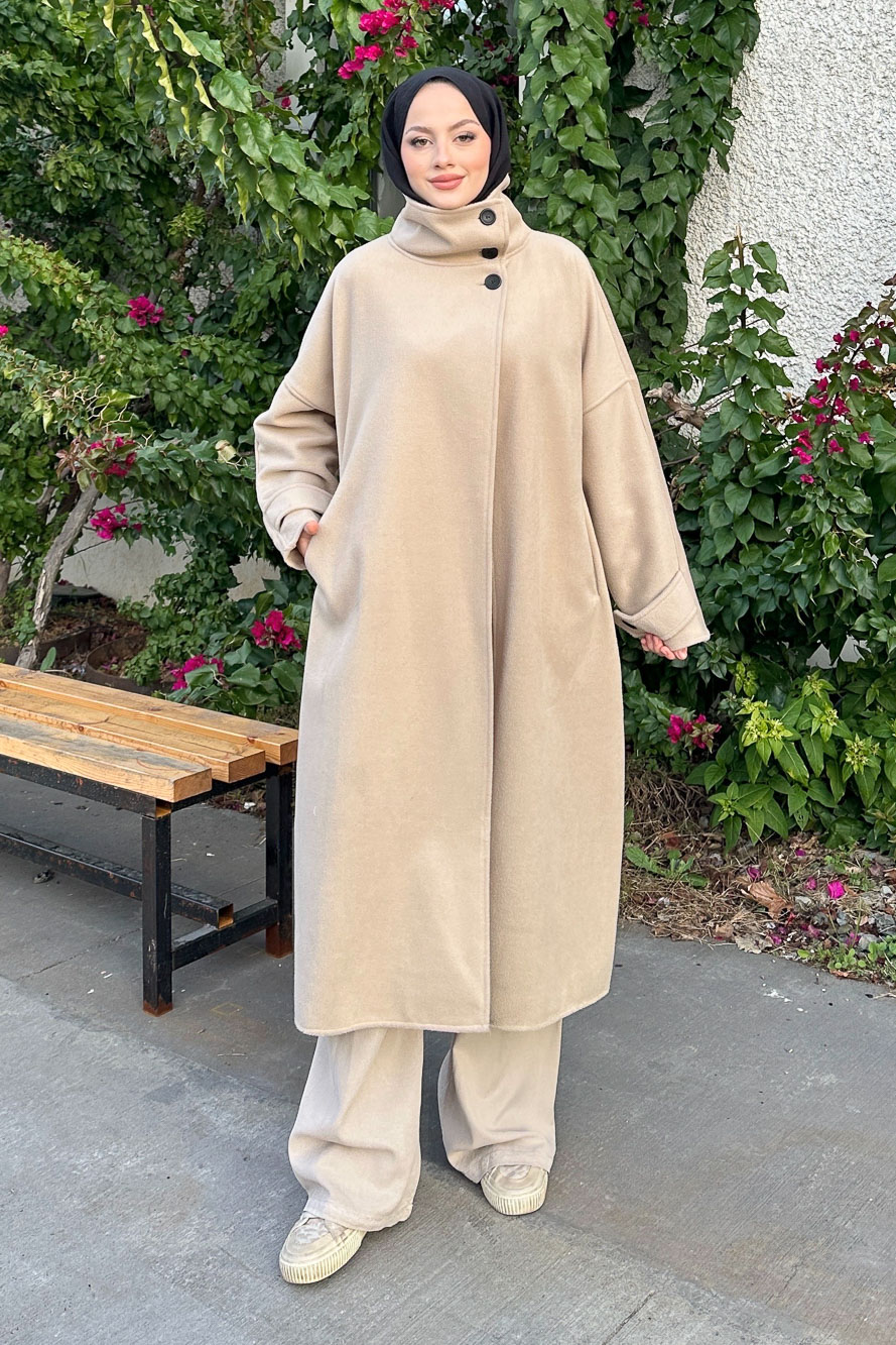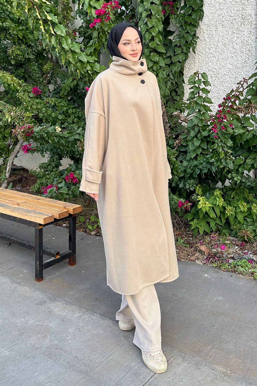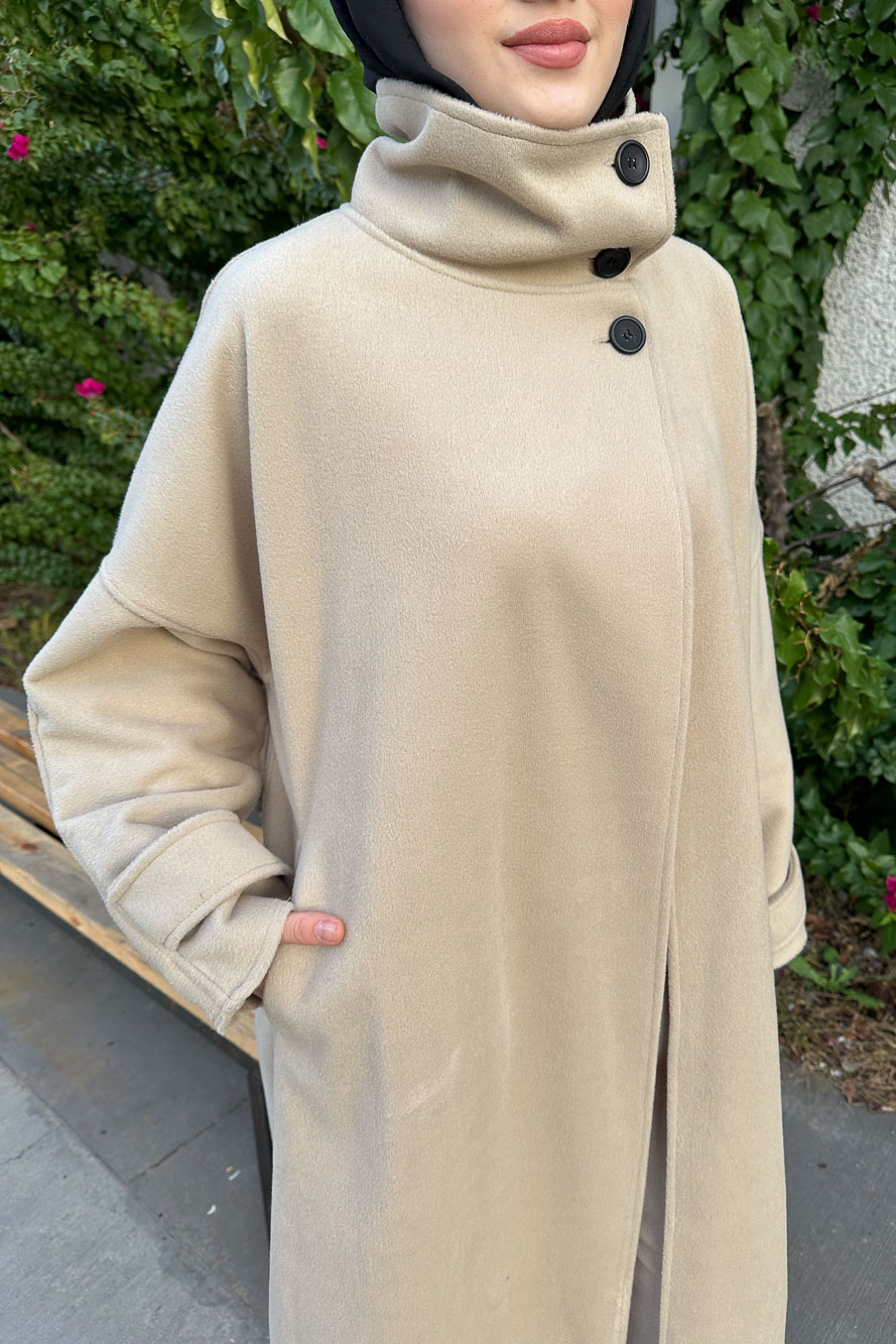 TriLine 3 Düğmeli Kaşe Kaban - Bej