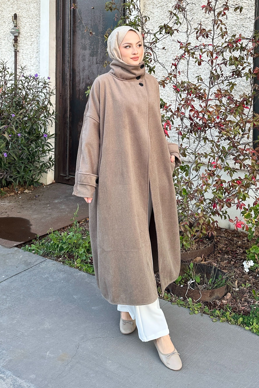 TriLine 3 Düğmeli Kaşe Kaban - Vizon