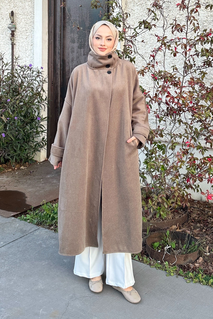 TriLine 3 Düğmeli Kaşe Kaban - Kahverengi