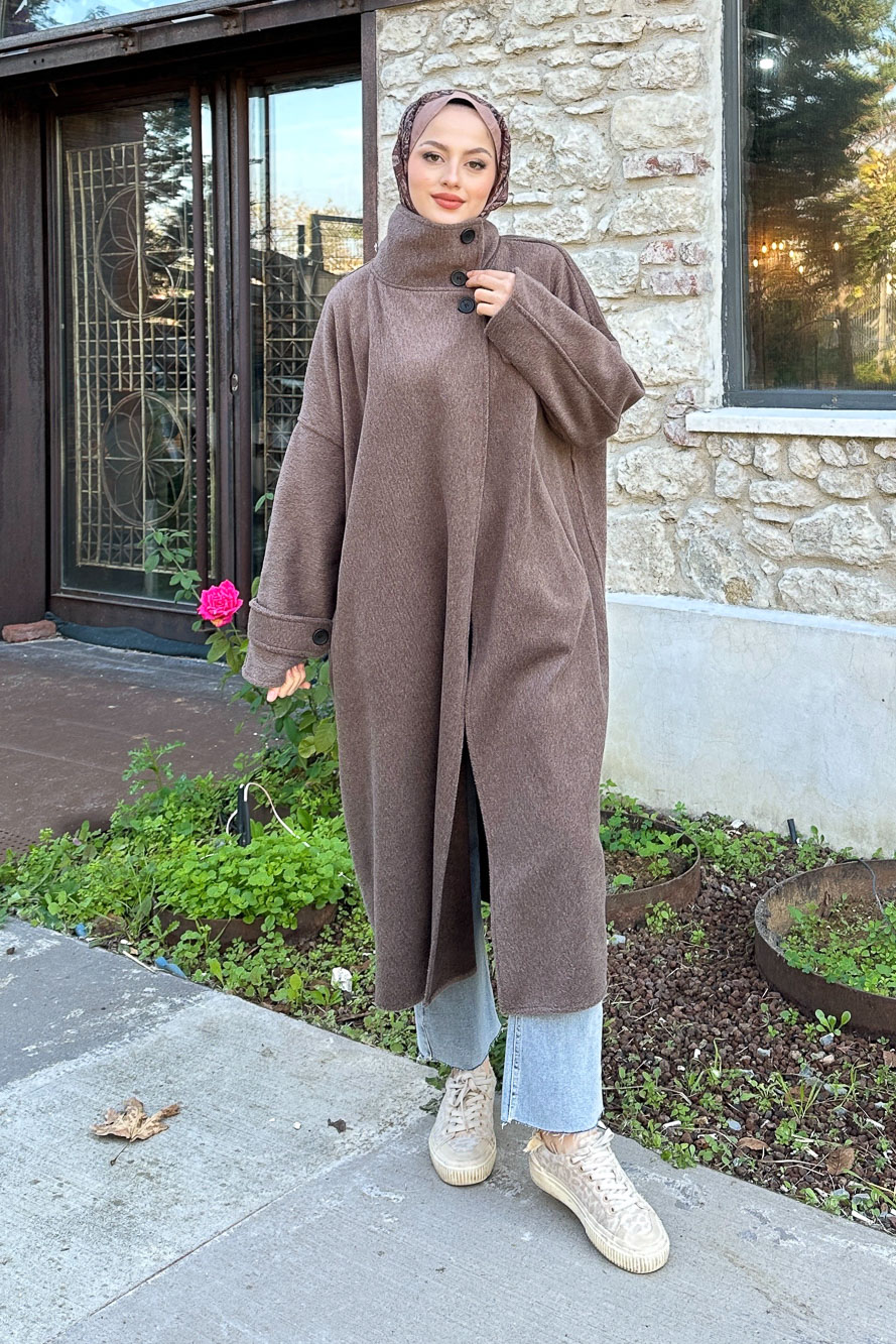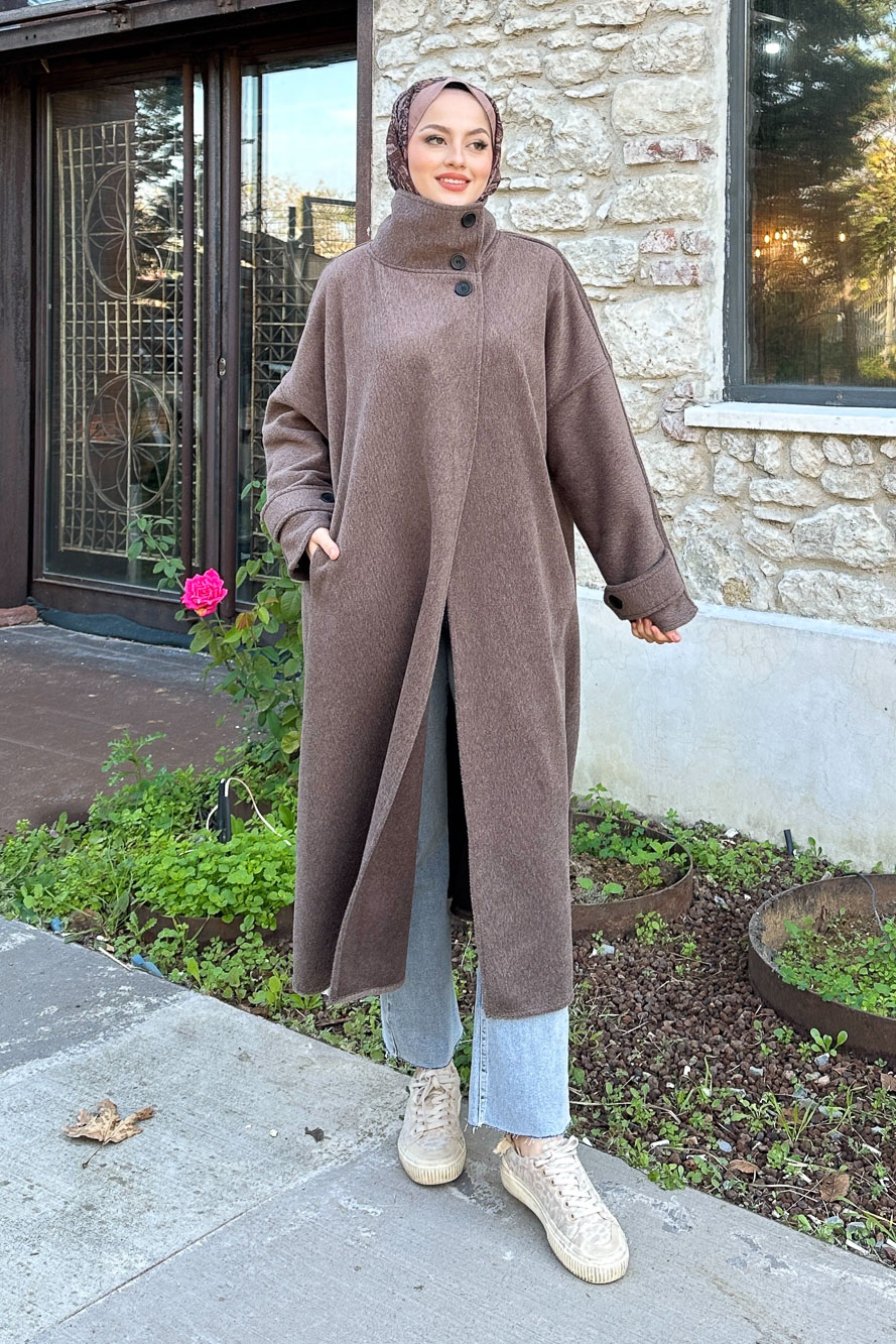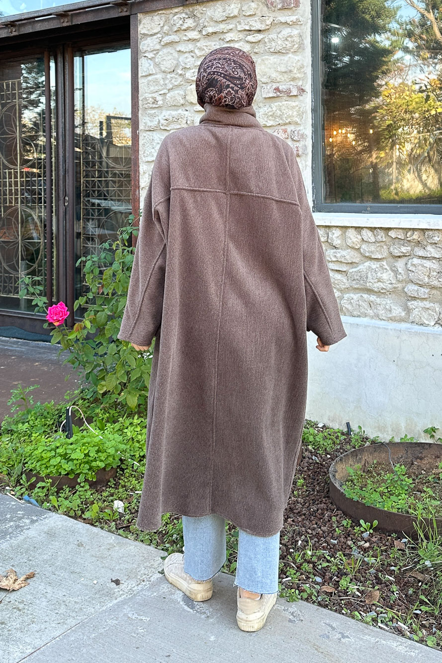 Balon Kol Kaşe Kaban - Çikolata