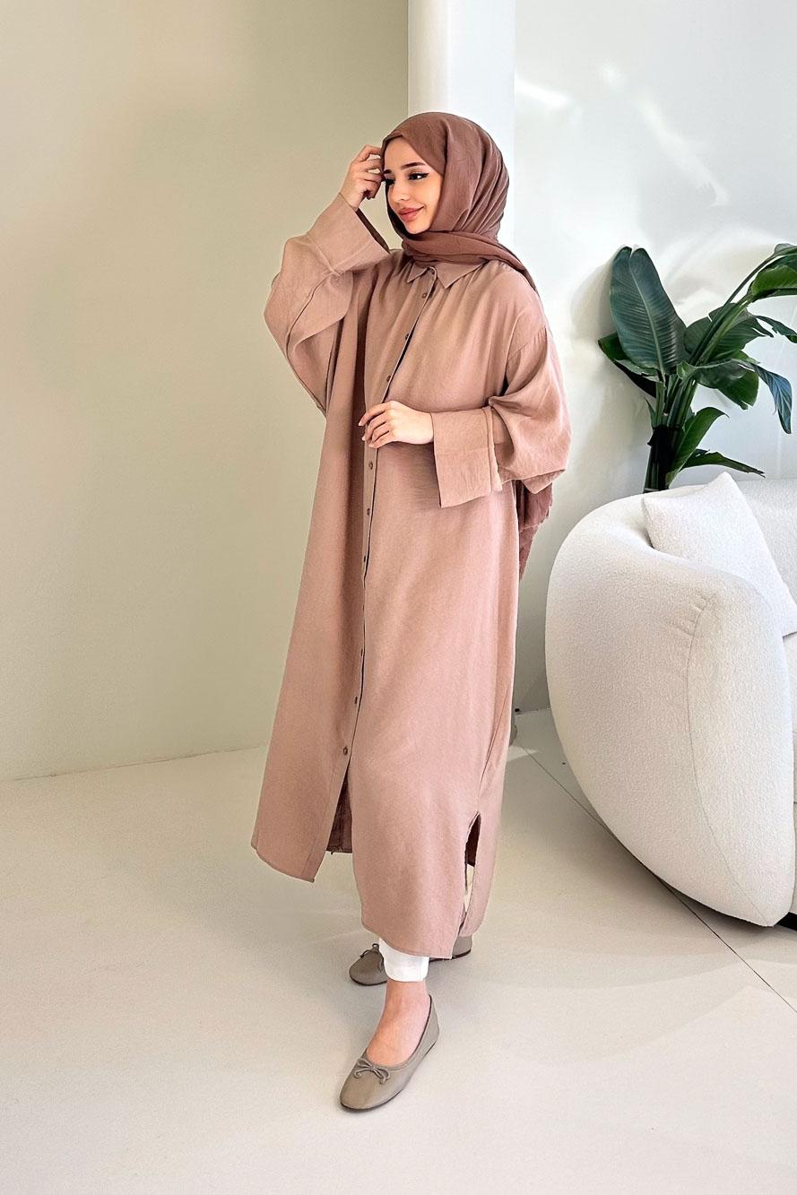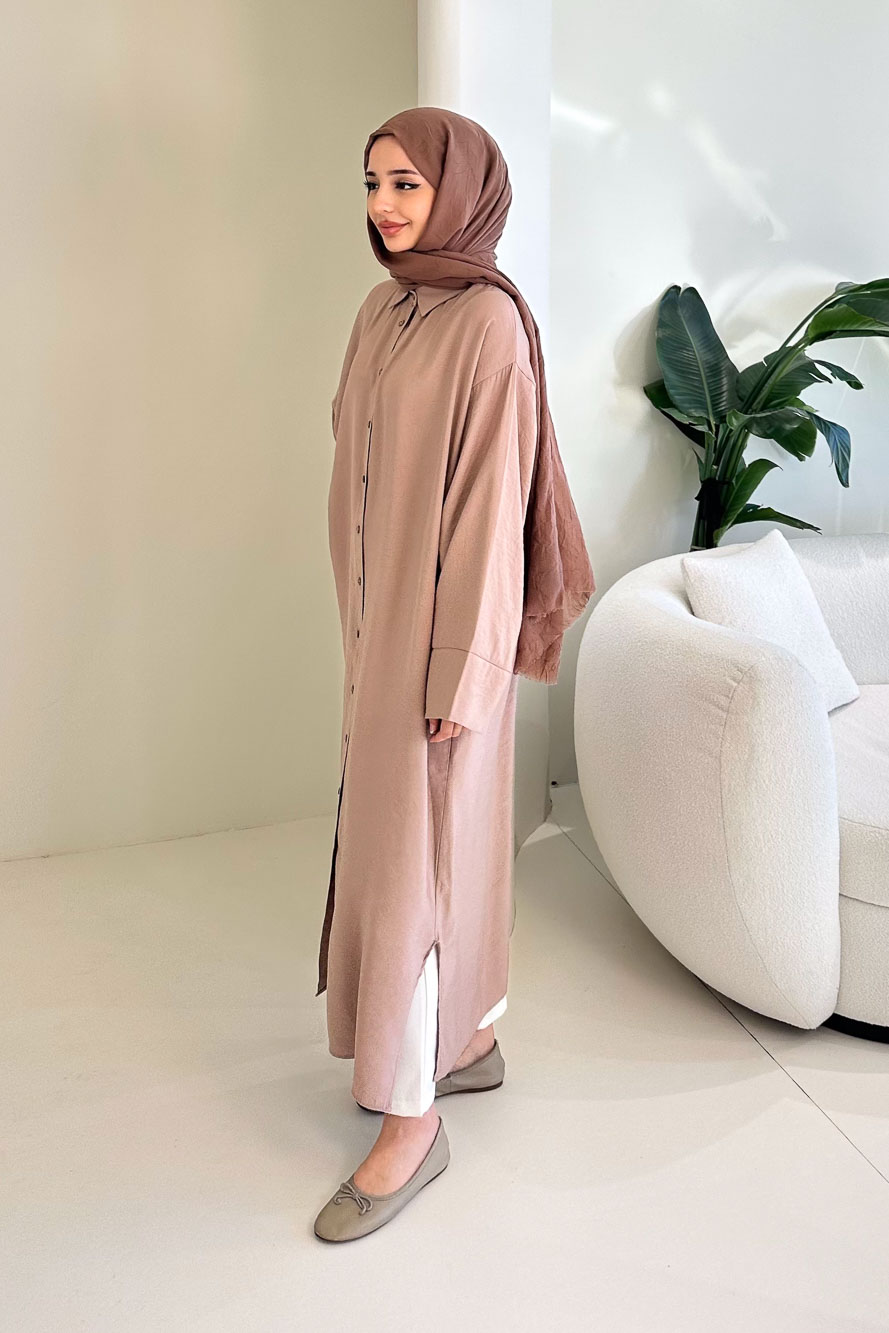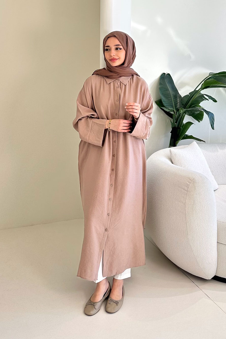 Uzun Tencel Gömlek - Bej