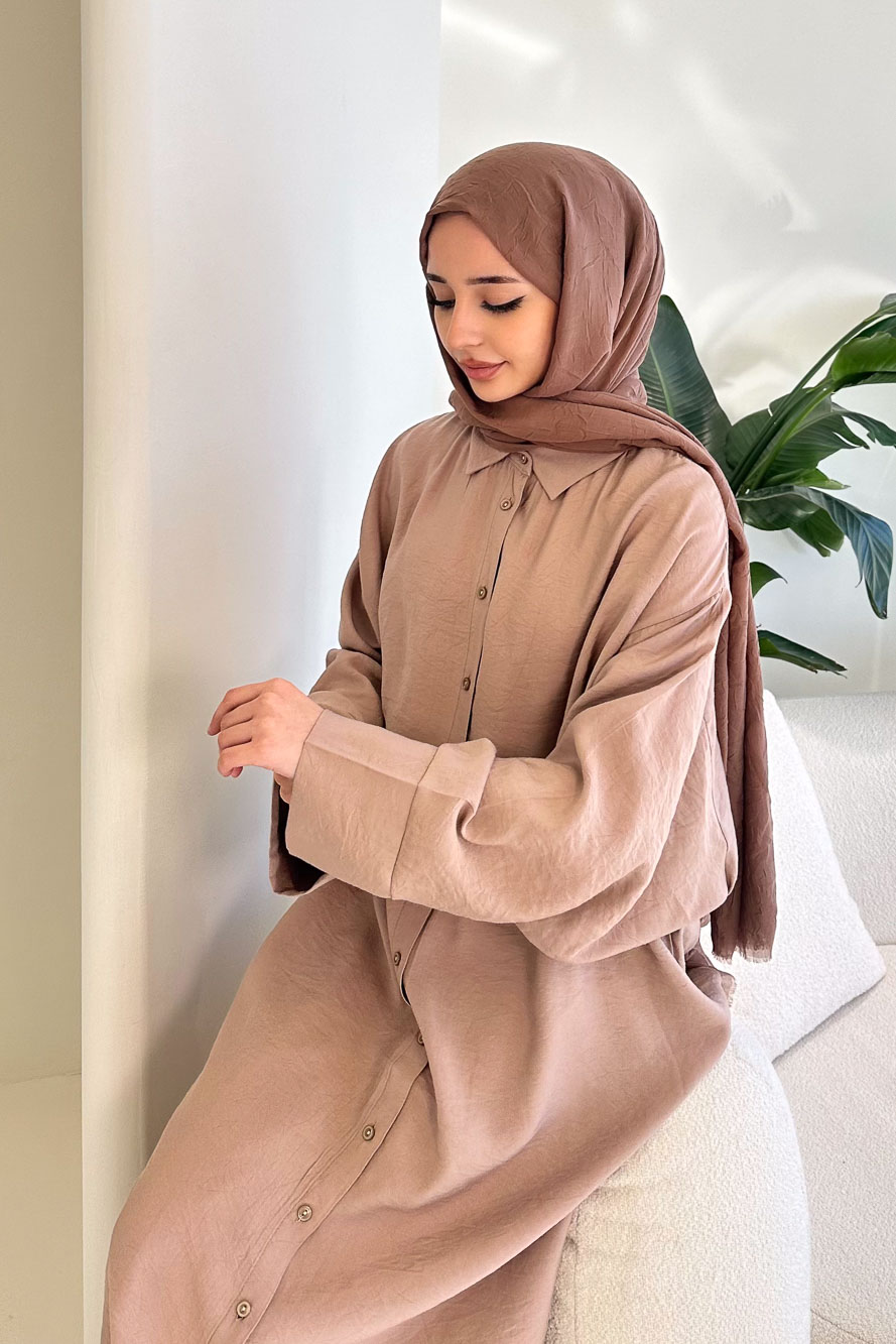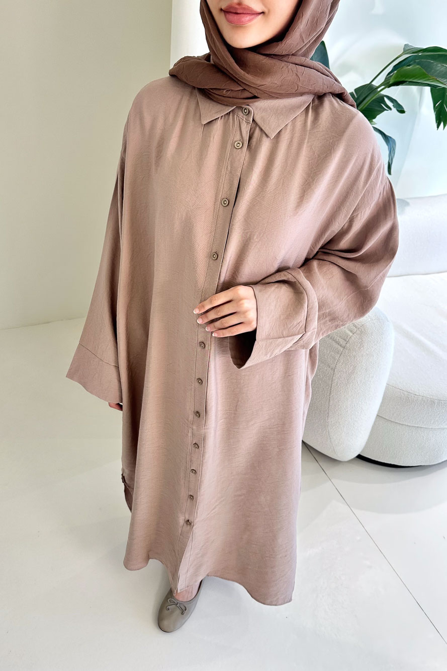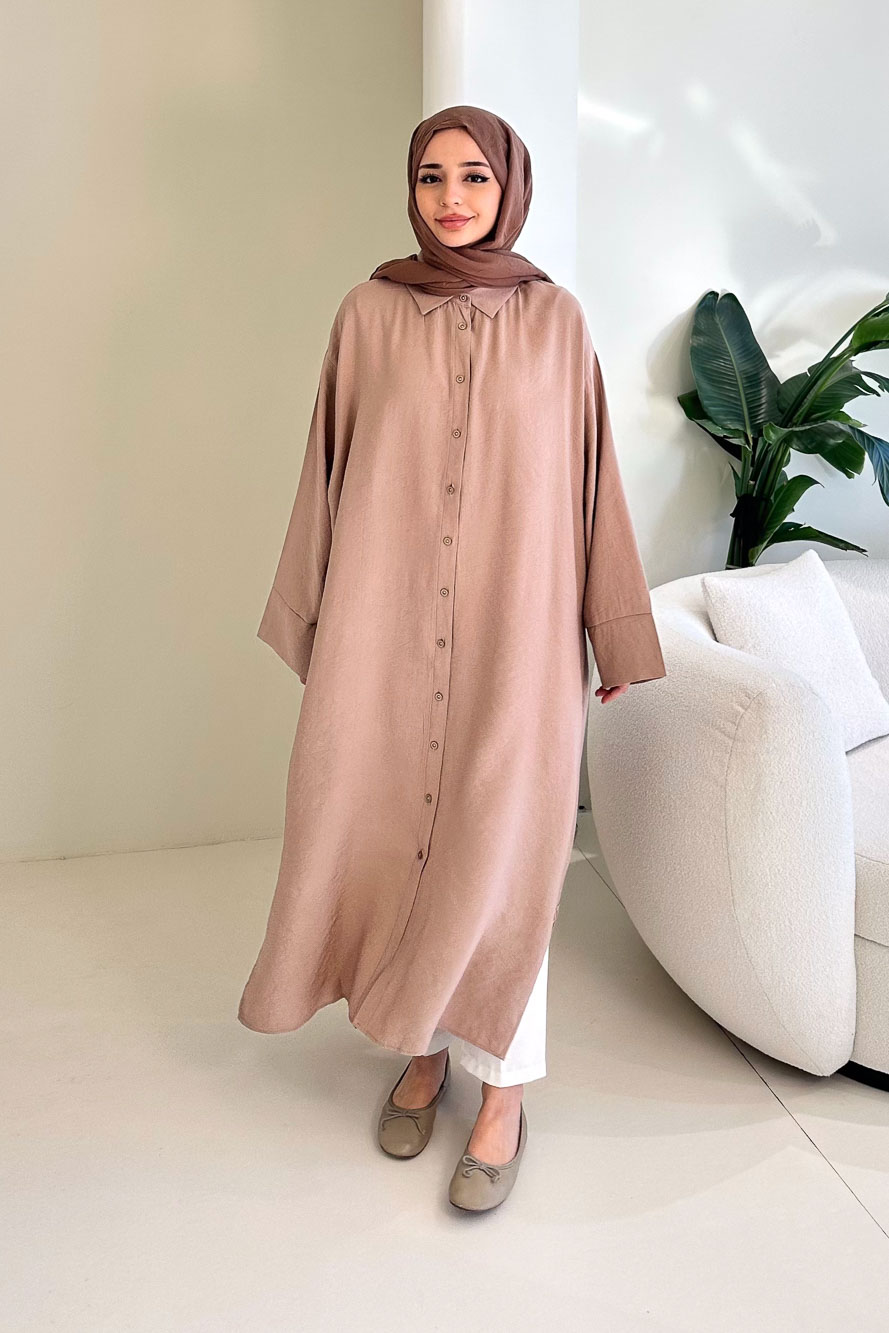 Uzun Tencel Gömlek - Bej