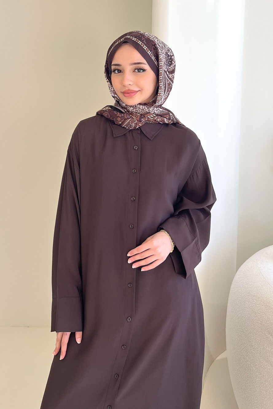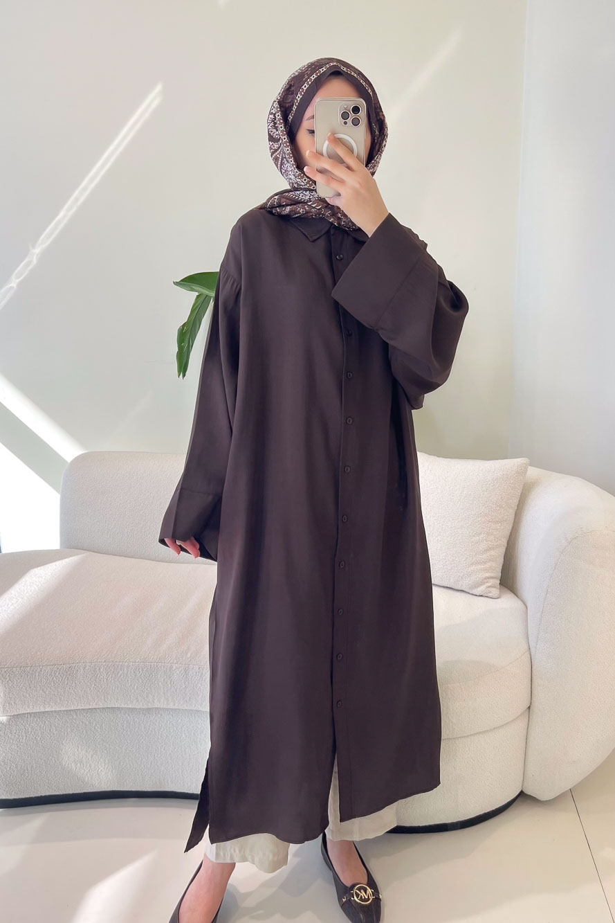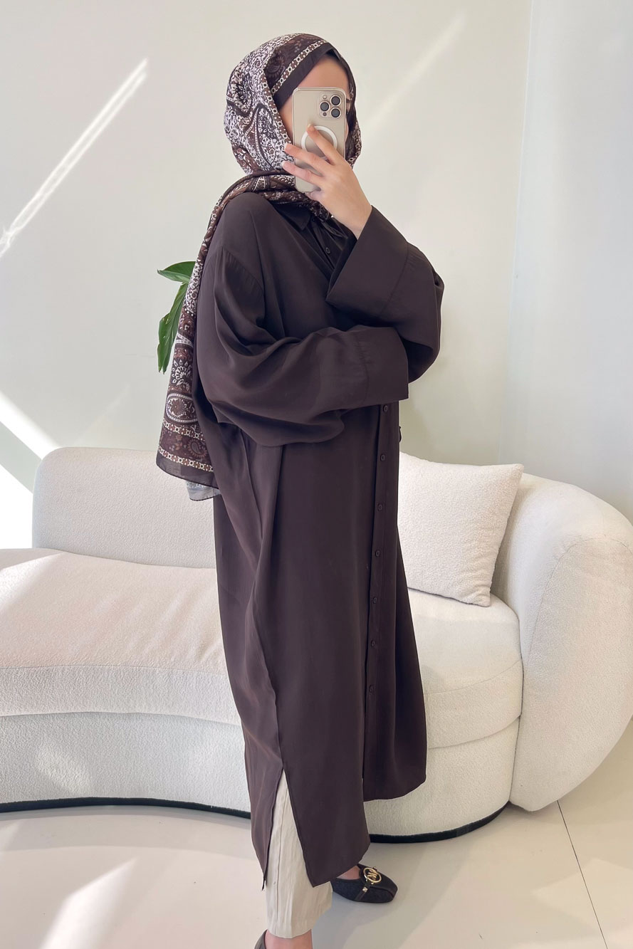 Uzun Tencel Gömlek - Kahverengi