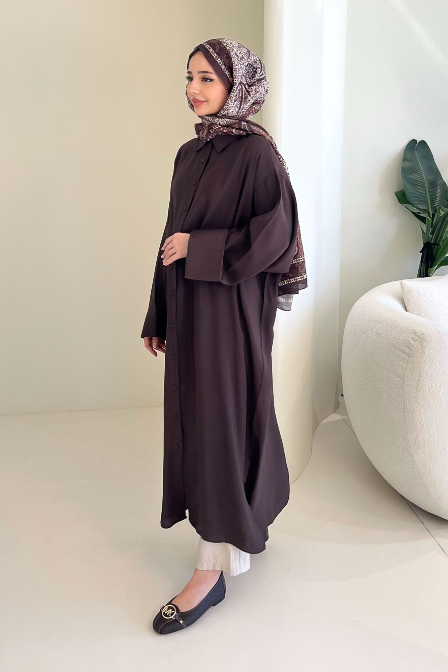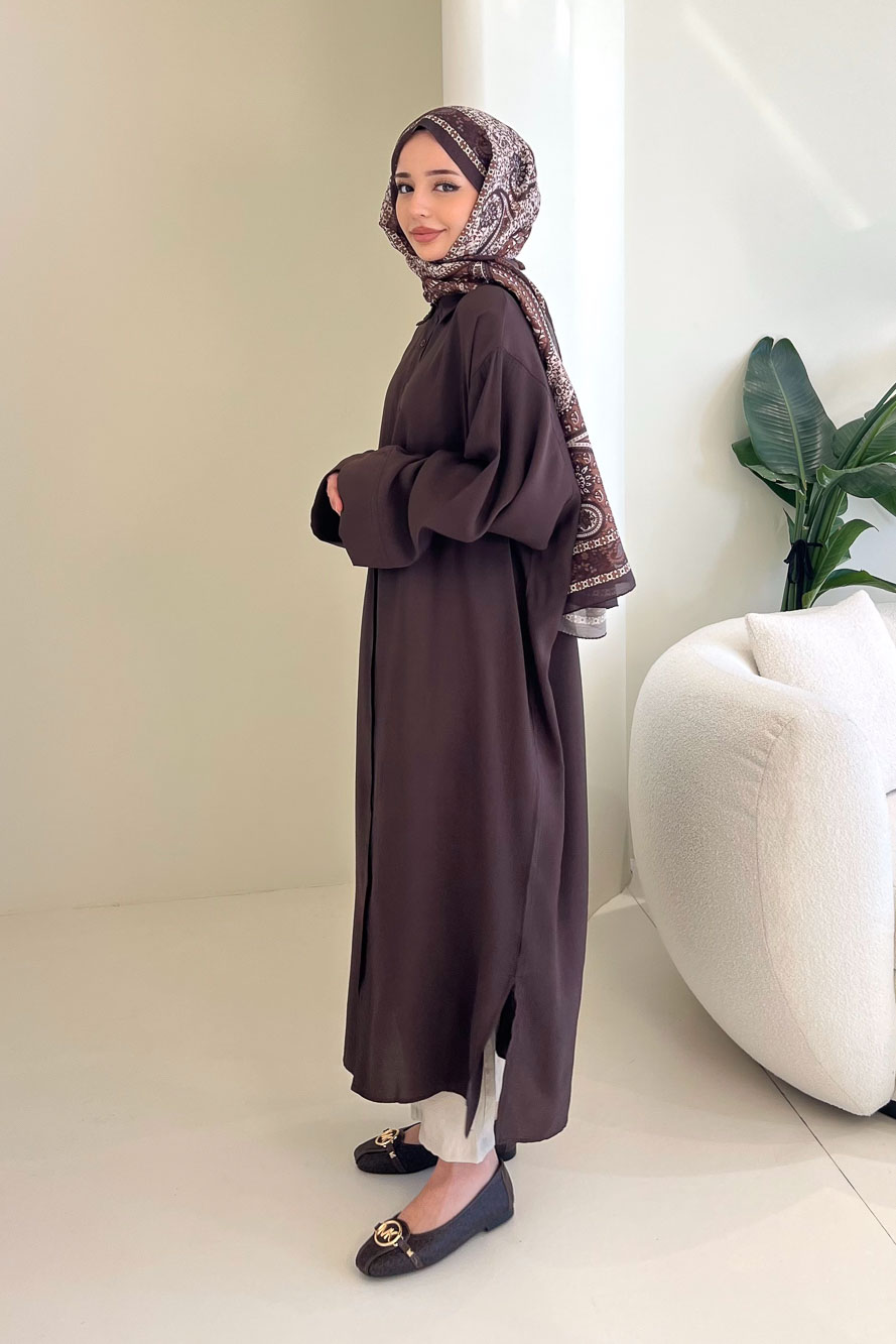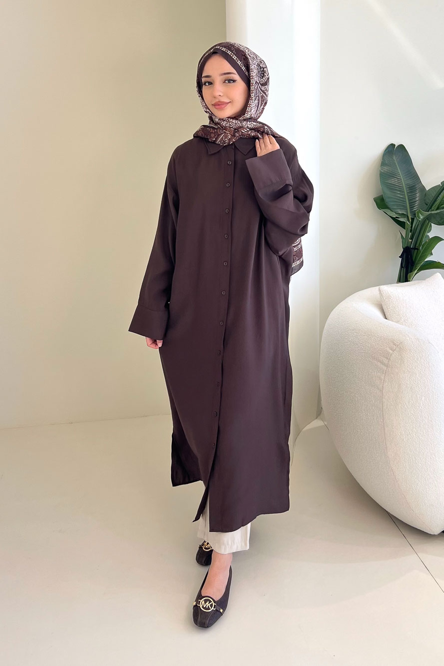Uzun Tencel Gömlek - Kahverengi