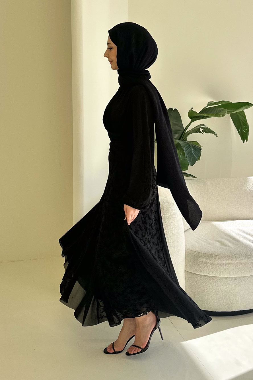 Hareketli tül yüzeyi ve zarif duruşuyla; özel davetlerden şık akşam kombinlerine kadar her ortamda güçlü ve sofistike bir görünüm oluşturur.