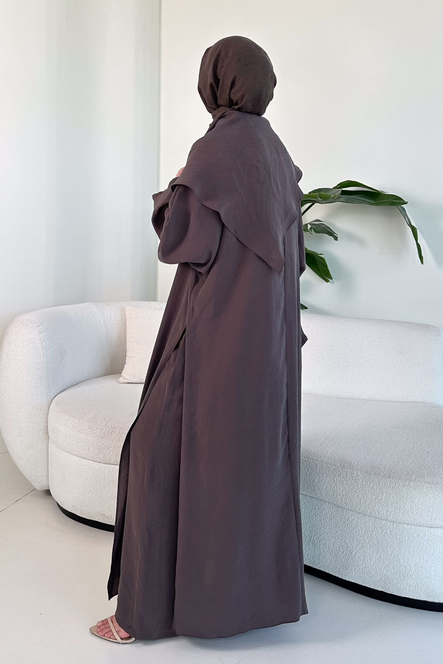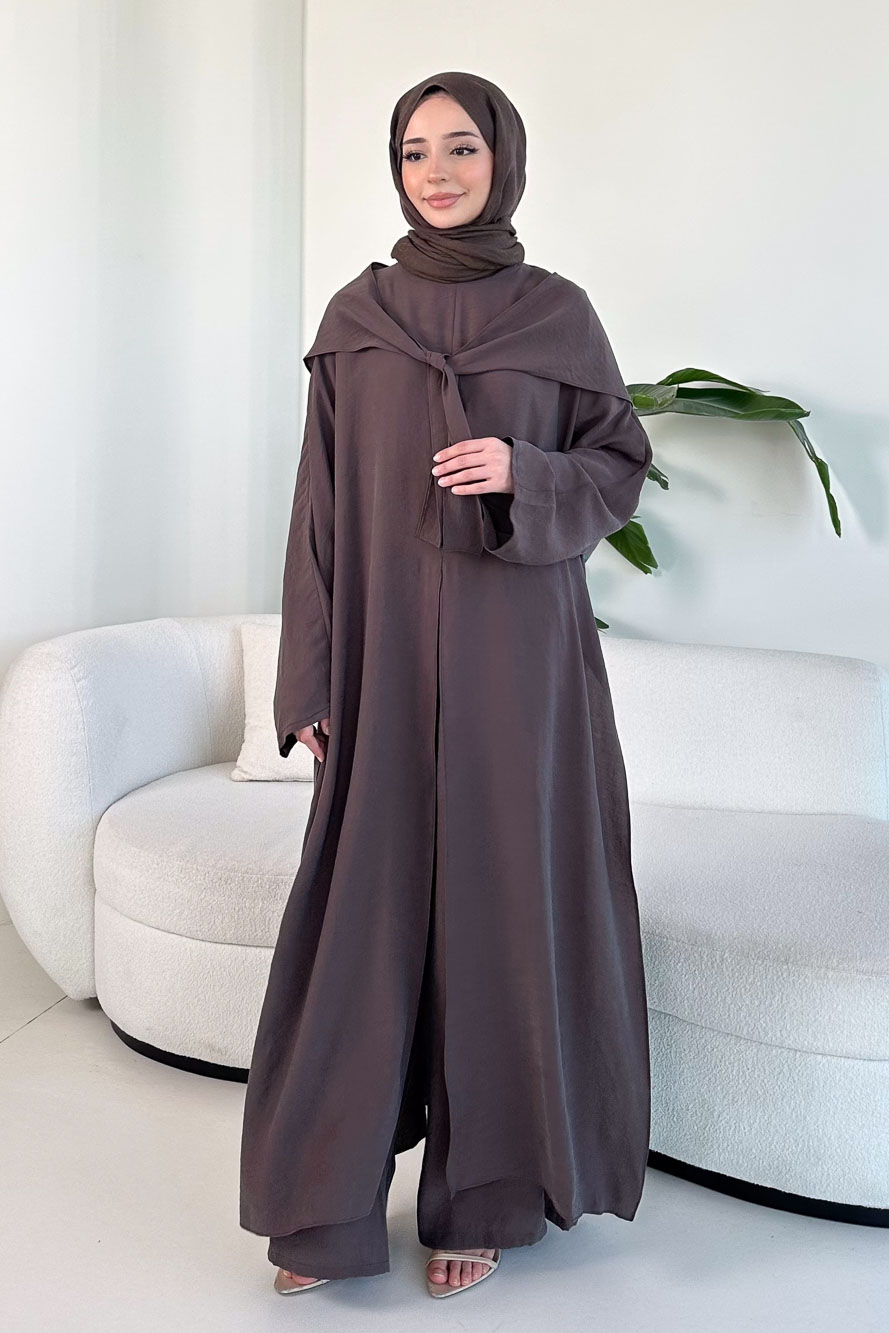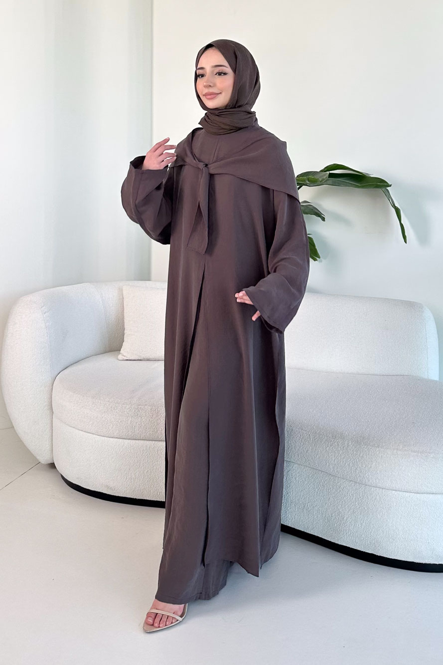 Lumi Gizli Fermuarlı Etekli Takım - Kahverengi