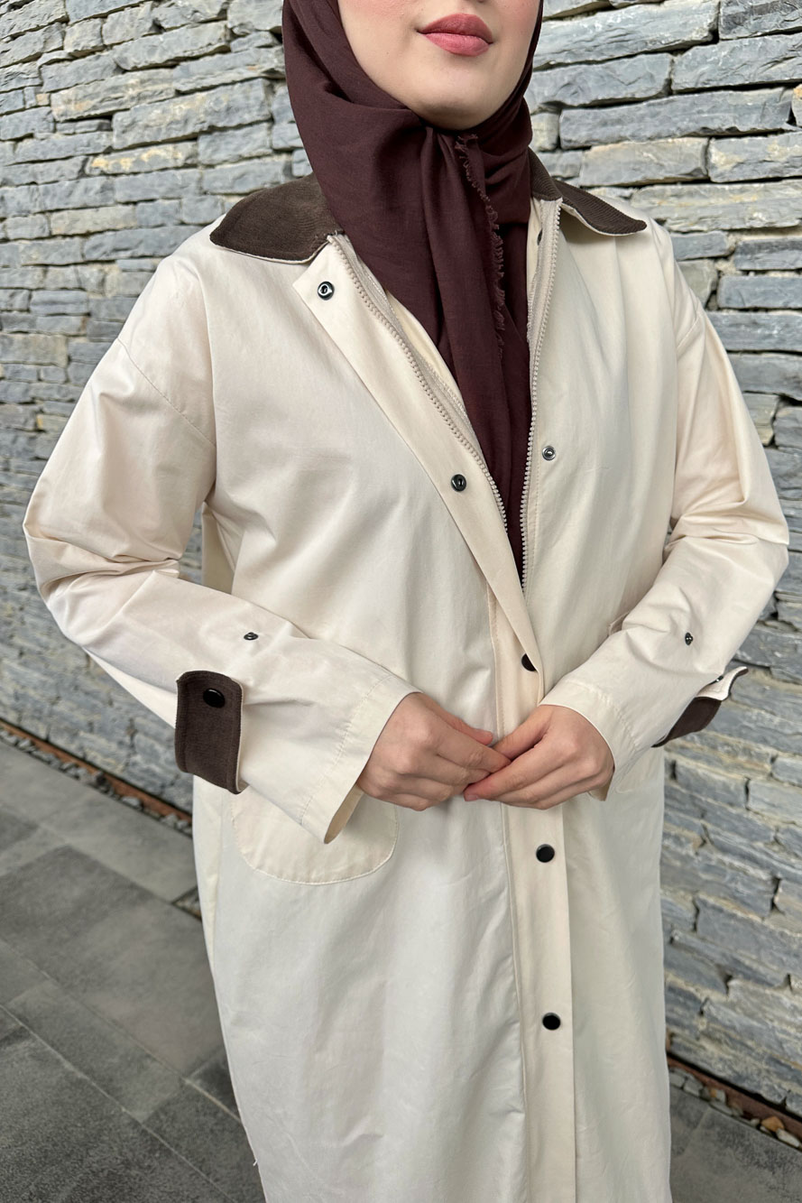 Vienna Yakası Kadife Trençkot - Bej
