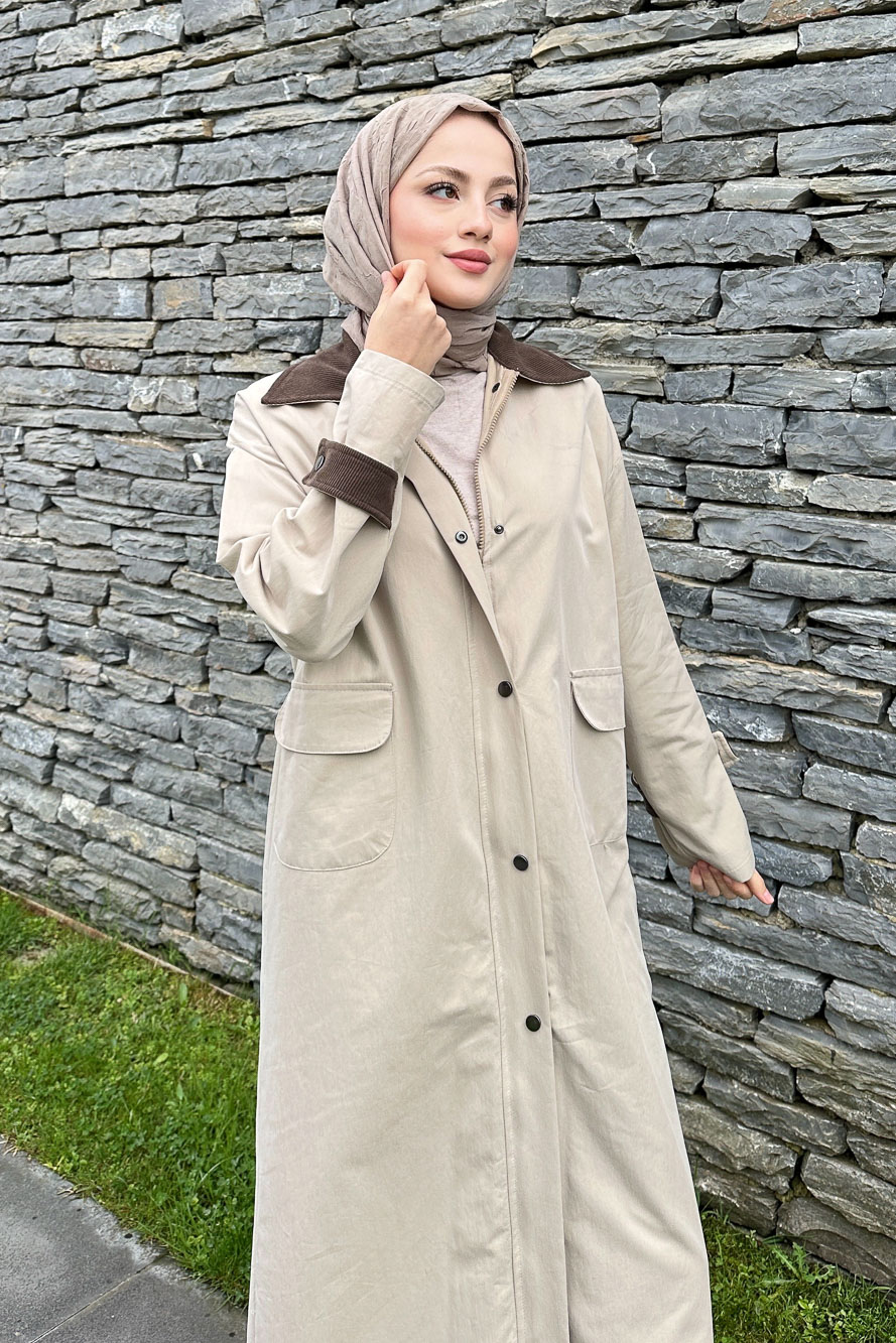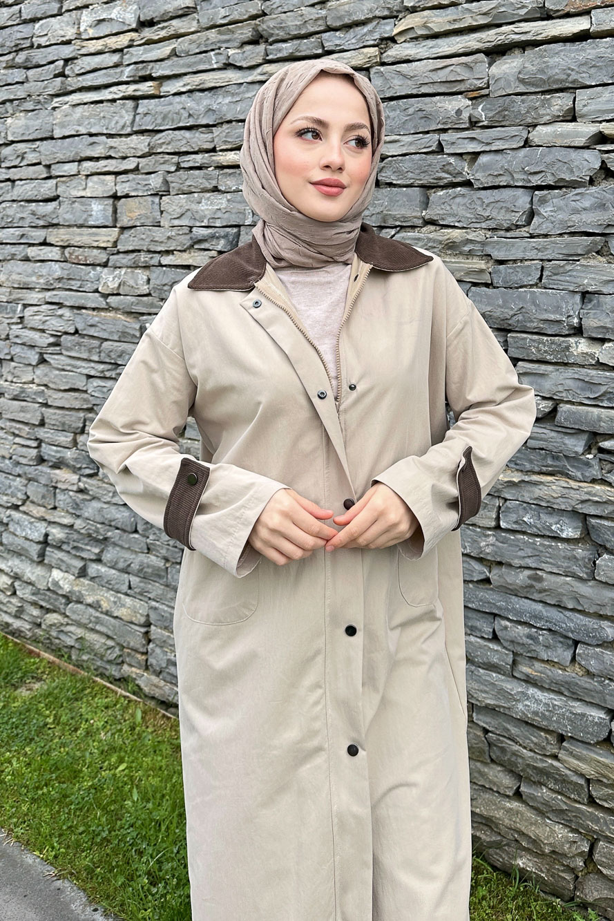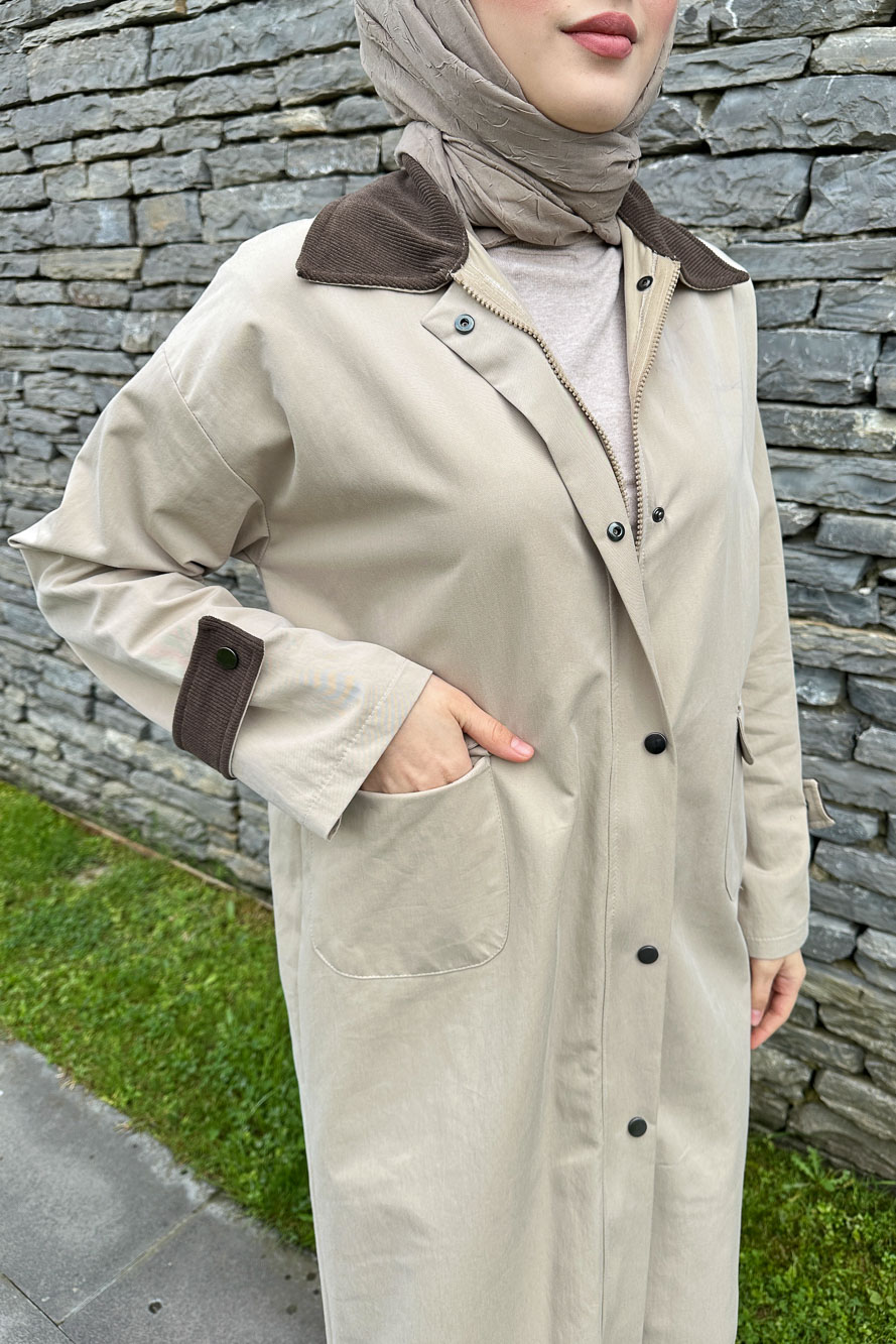 Vienna Yakası Kadife Trençkot - Taş Rengi