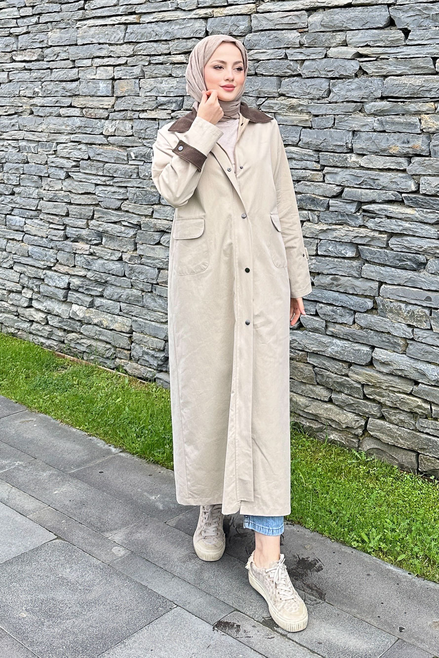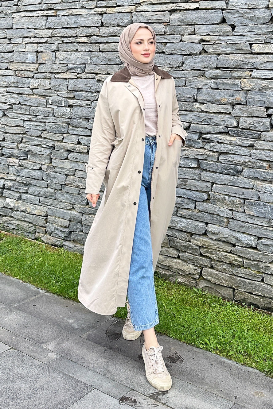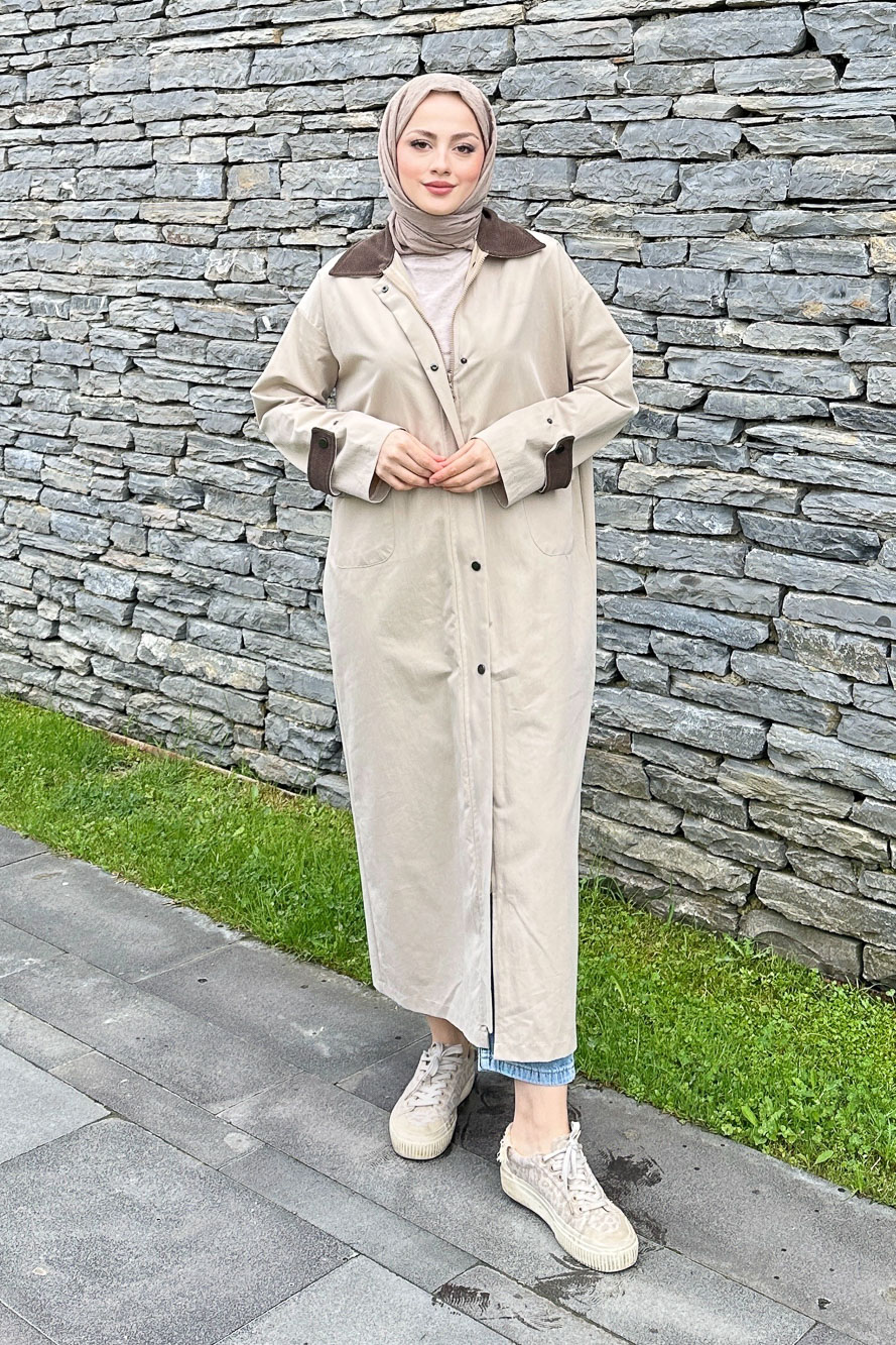 Vienna Yakası Kadife Trençkot - Taş Rengi