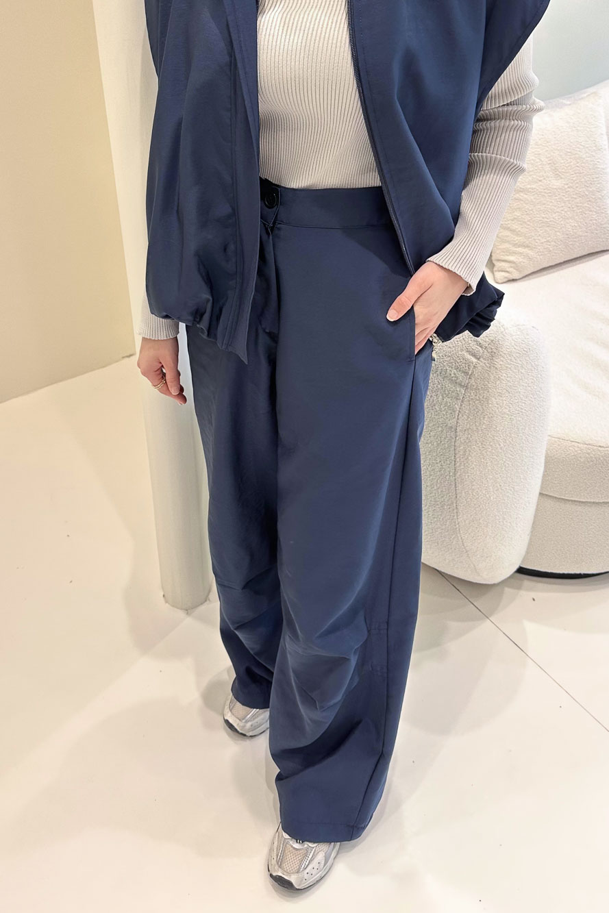 Nova Kot Pantolon Tunik Cepli Düğmeli Takım - Lacivert